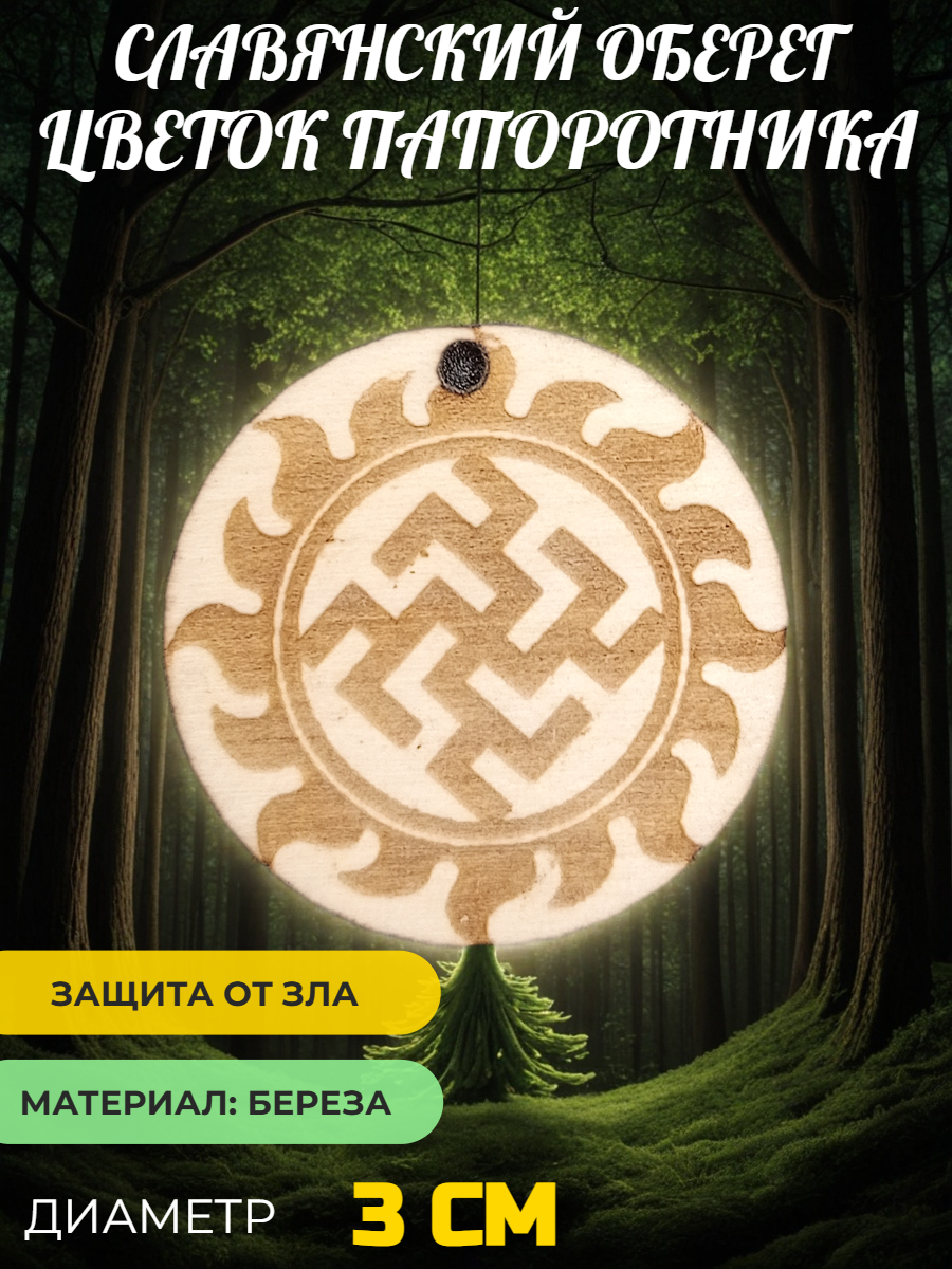 Деревянный славянский оберег Цветок Папоротника (Одолень трава)