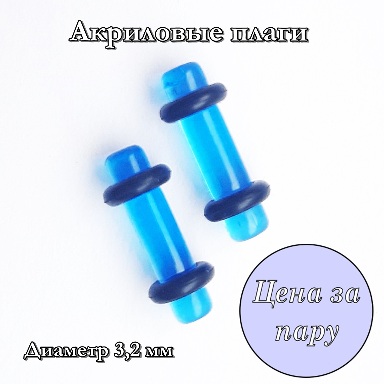 Цвет синий прозрачный. Диаметр 3,2 мм. Цена за пару. Материал акрил