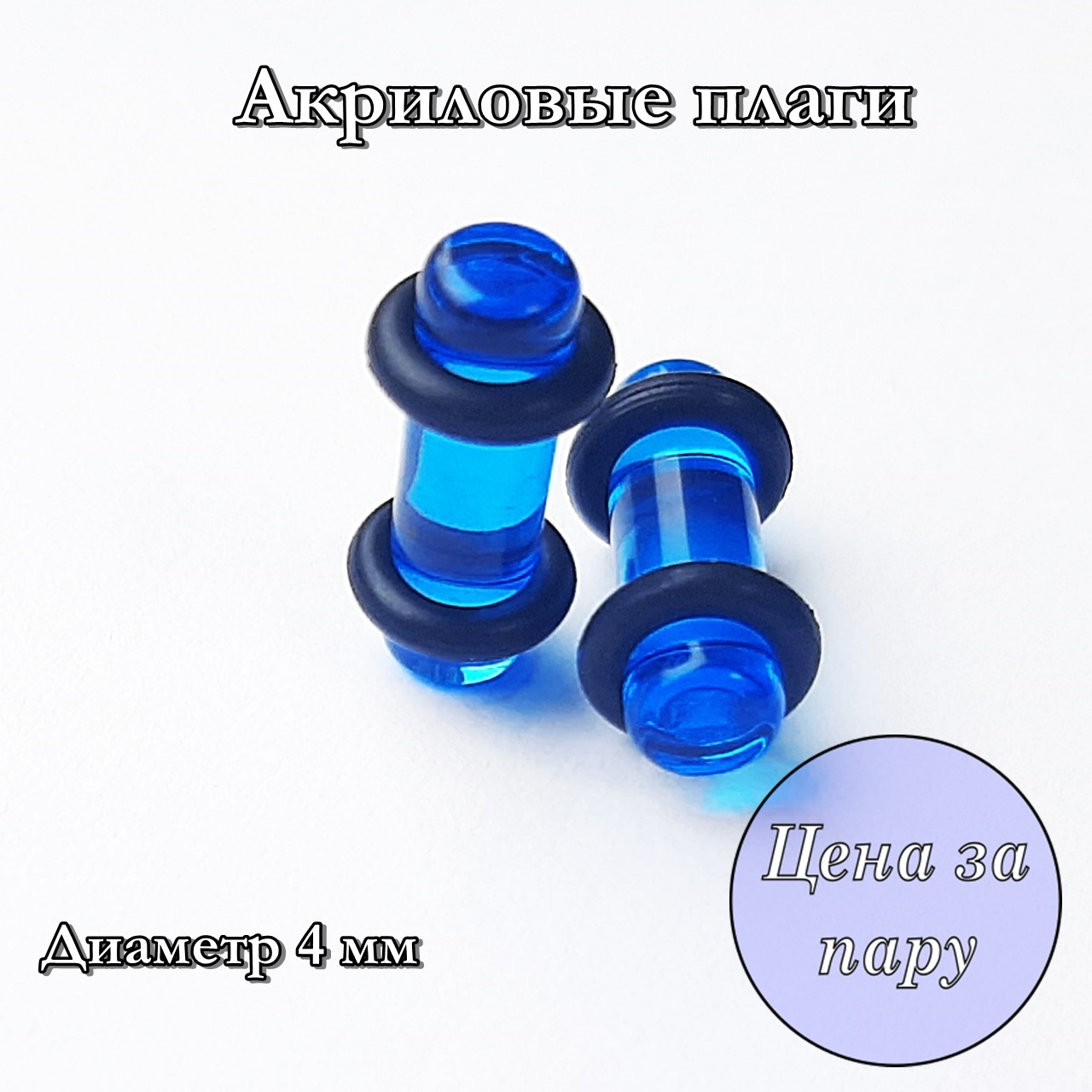 Цвет синий прозрачный. Диаметр 4 мм. Цена за пару. Материал акрил