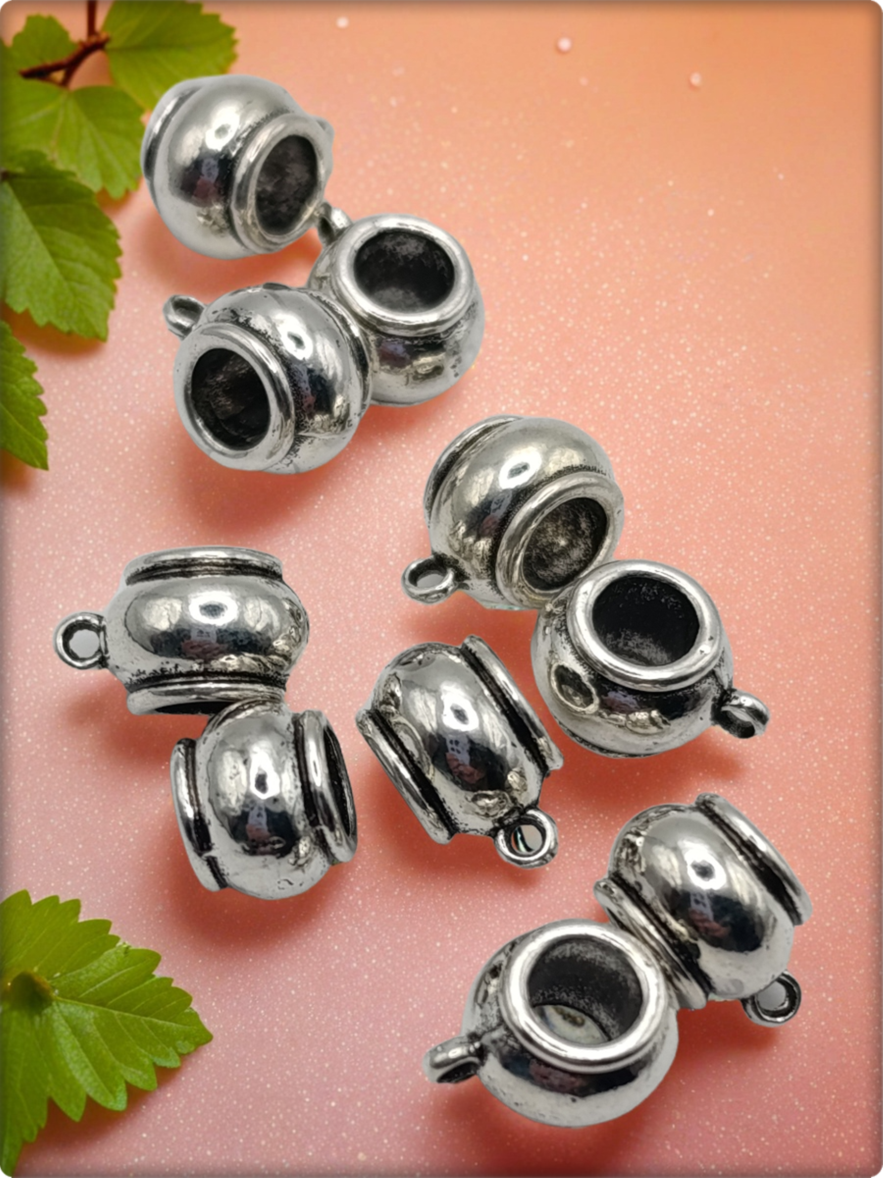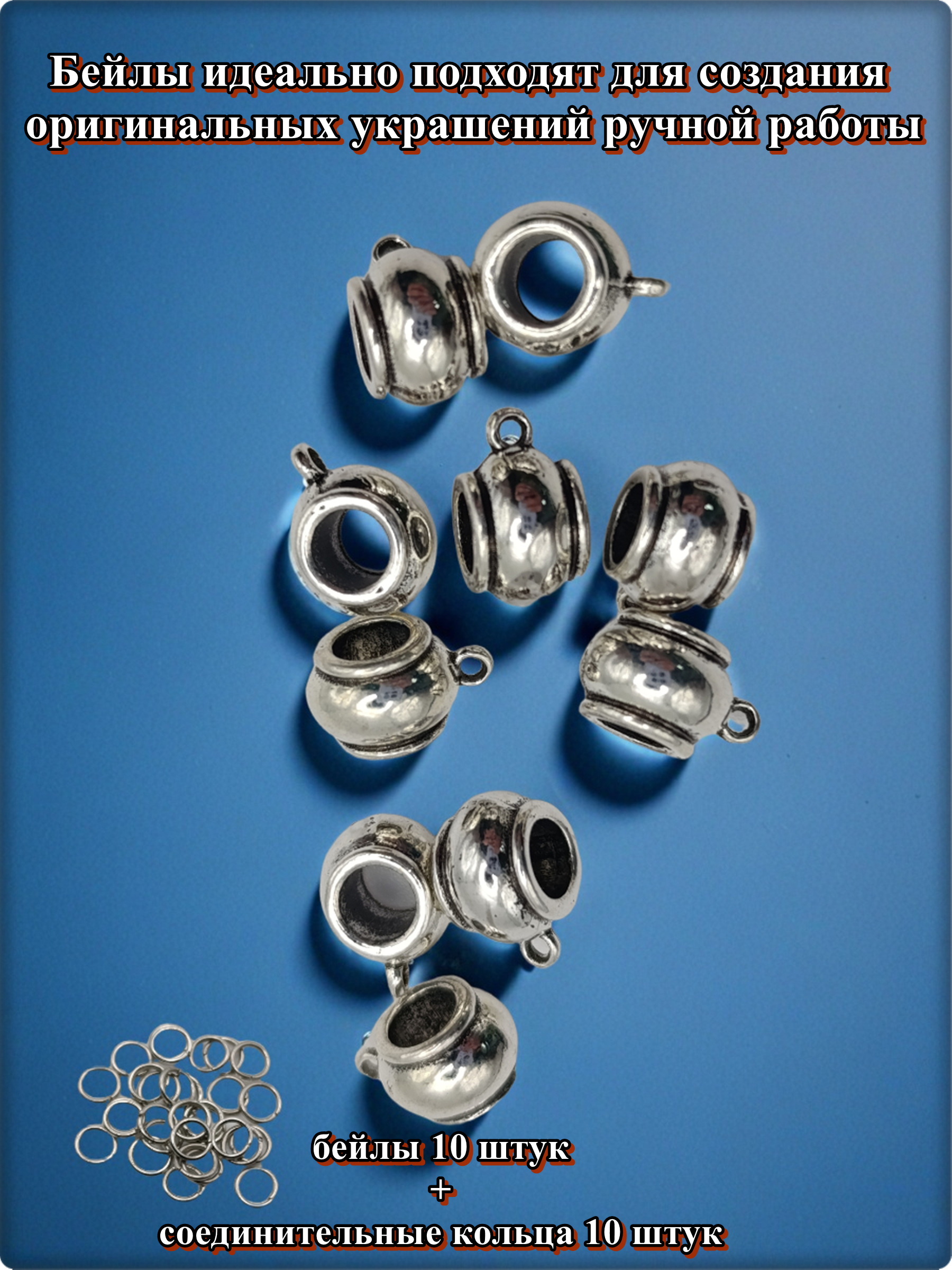 Эти бейлы идеально подходят для создания уникальных украшений ручной работы благодаря своему элегантному дизайну и высококачественному материалу. В набор входят соединительные кольца диаметром 6 мм, что обеспечивает удобство при сборке изделий. Используются для изготовления подвесок, кулонов, браслетов и серег. Идеальны как для начинающих мастеров, так и для профессионалов.