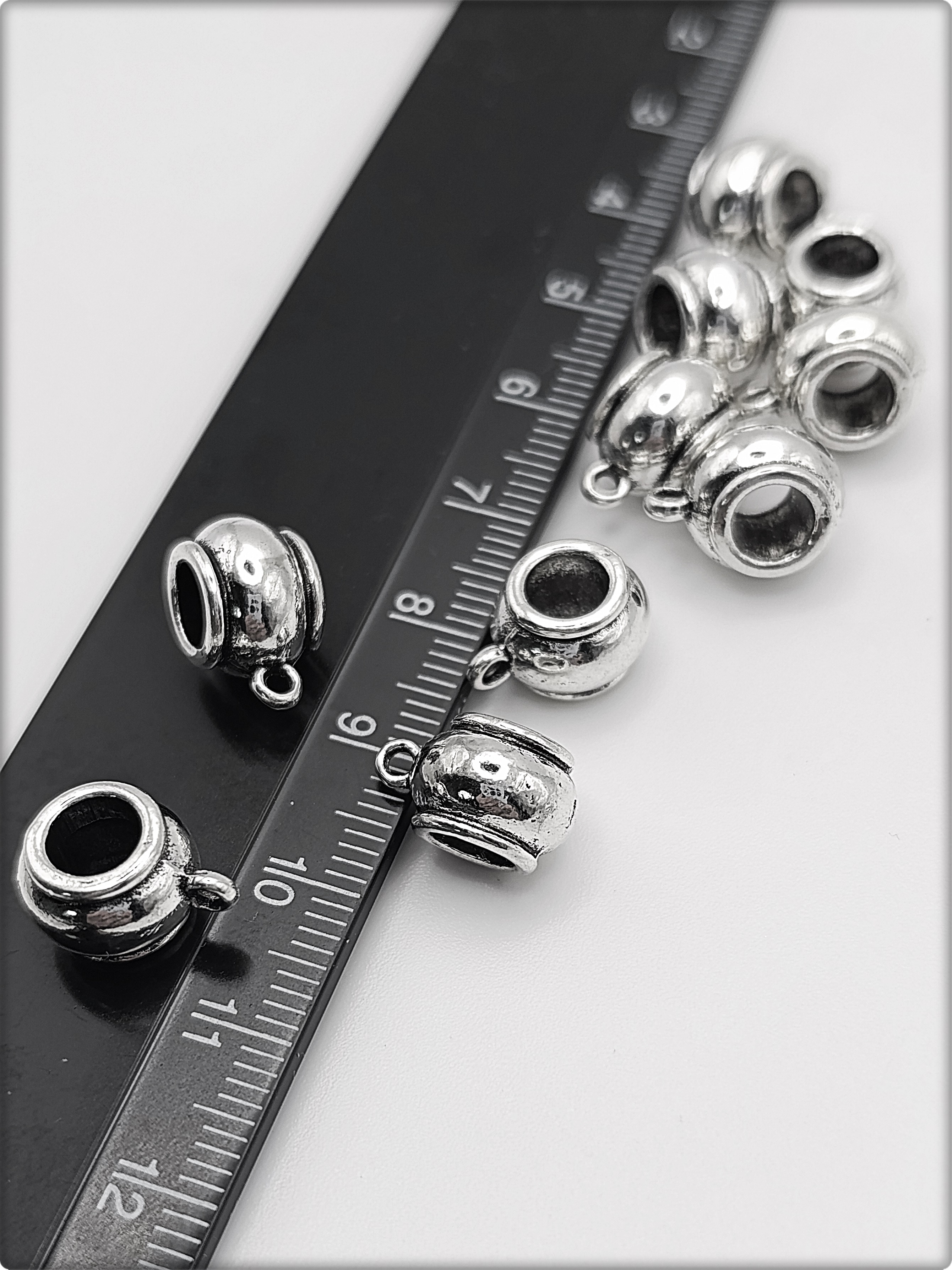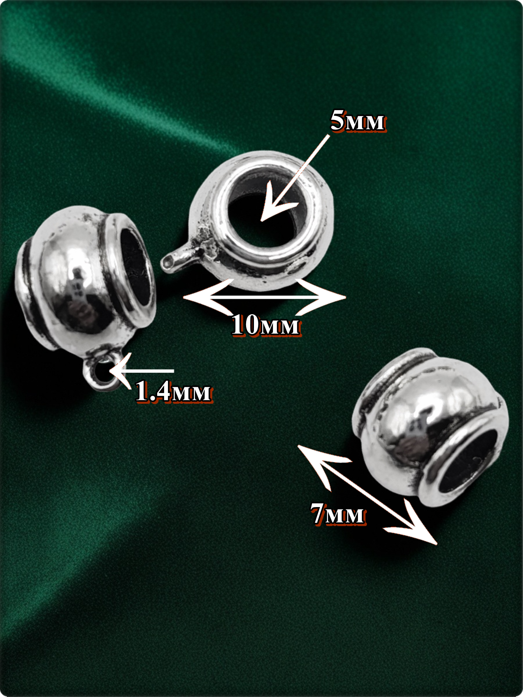 Материал: бижутерный сплав. Высота бейла 10мм, длина 7мм, внутренний диаметр 5мм.