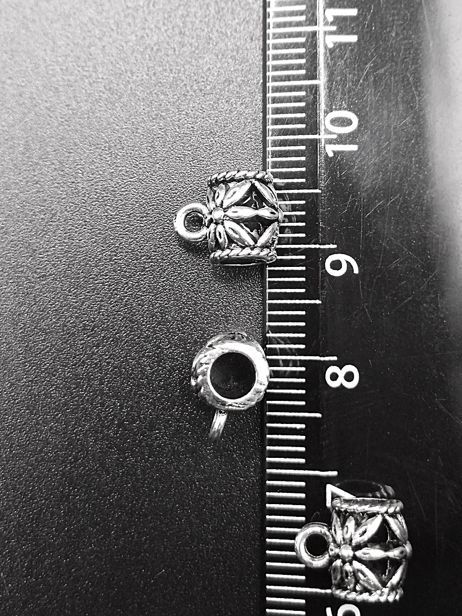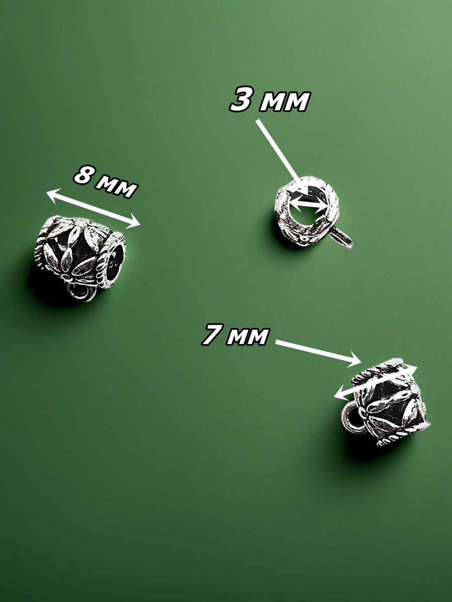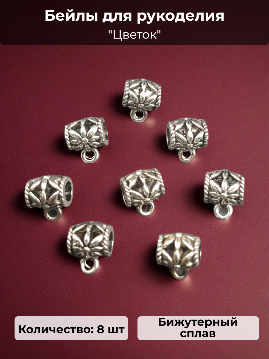 Материал: бижутерный сплав. Высота бейла 8 мм, ширина 7 мм, внутренний диаметр 3 мм.
