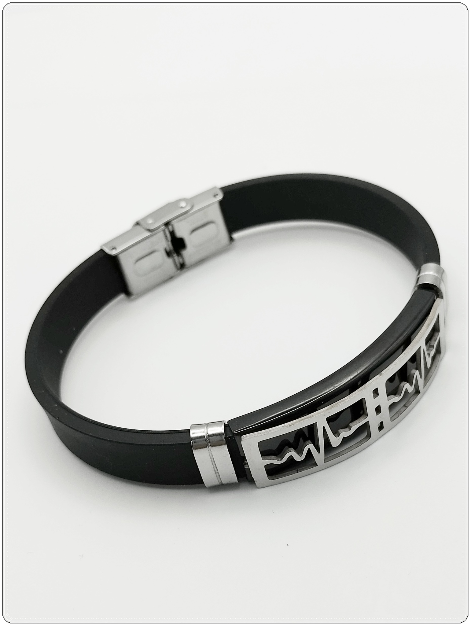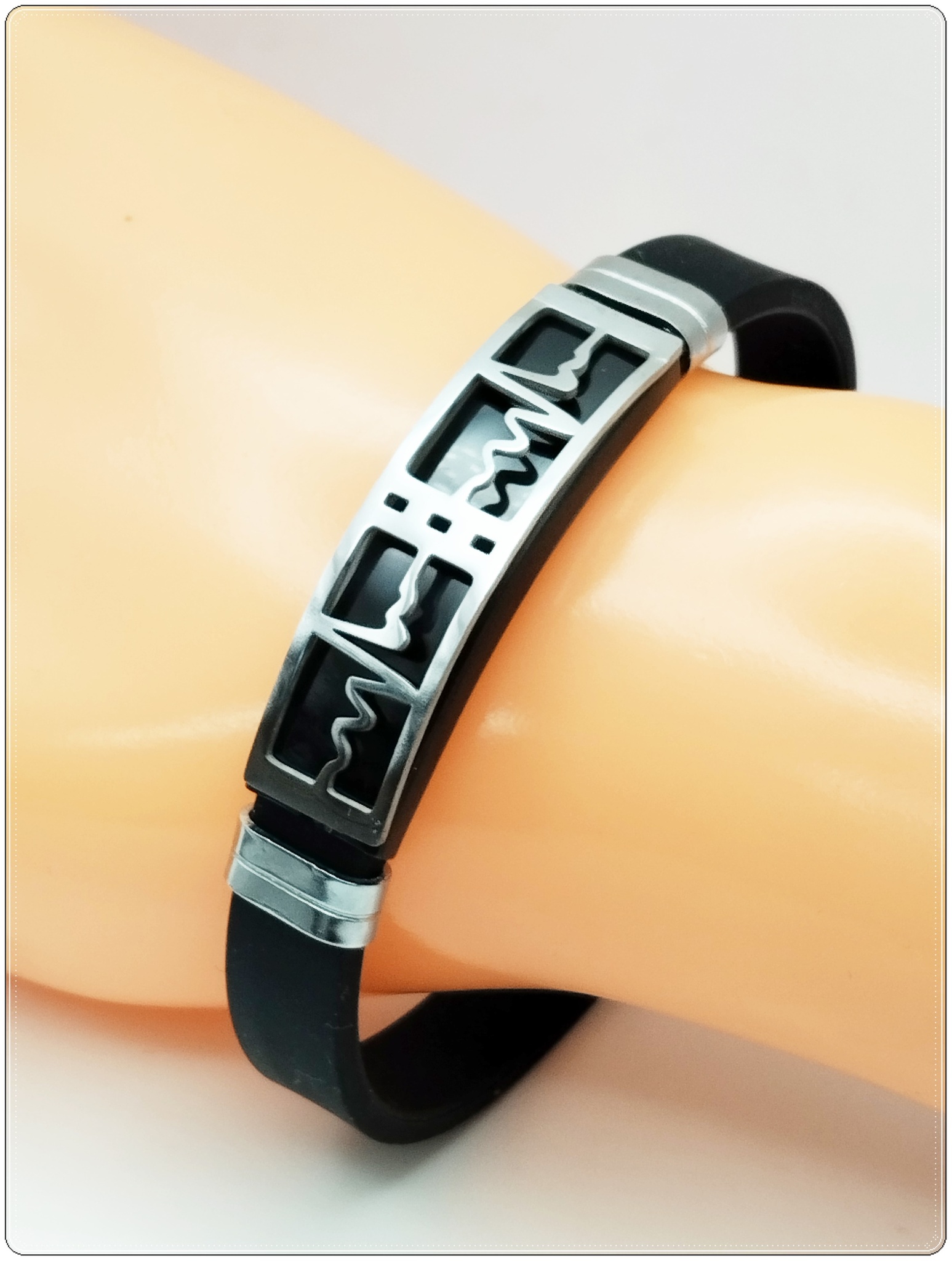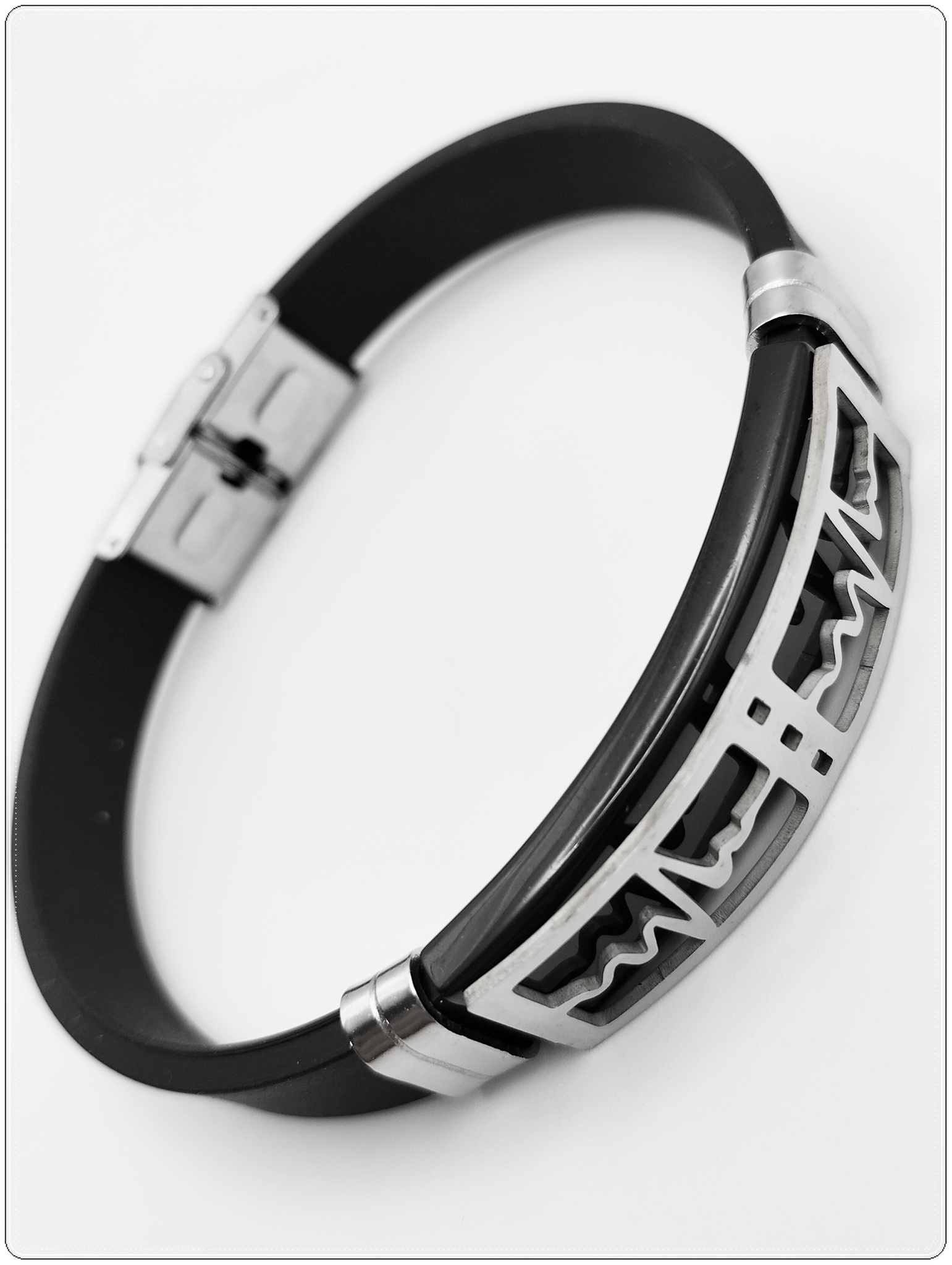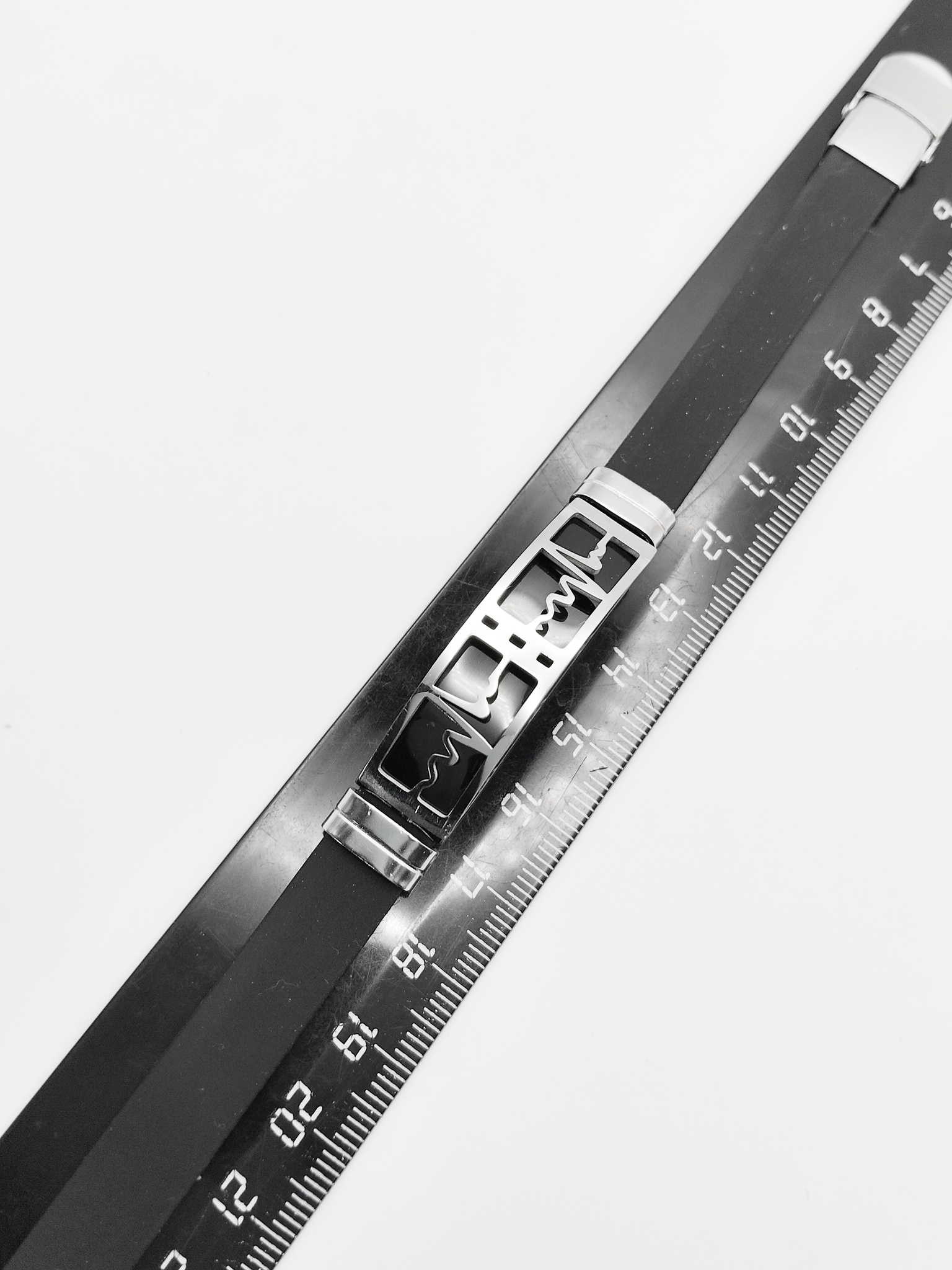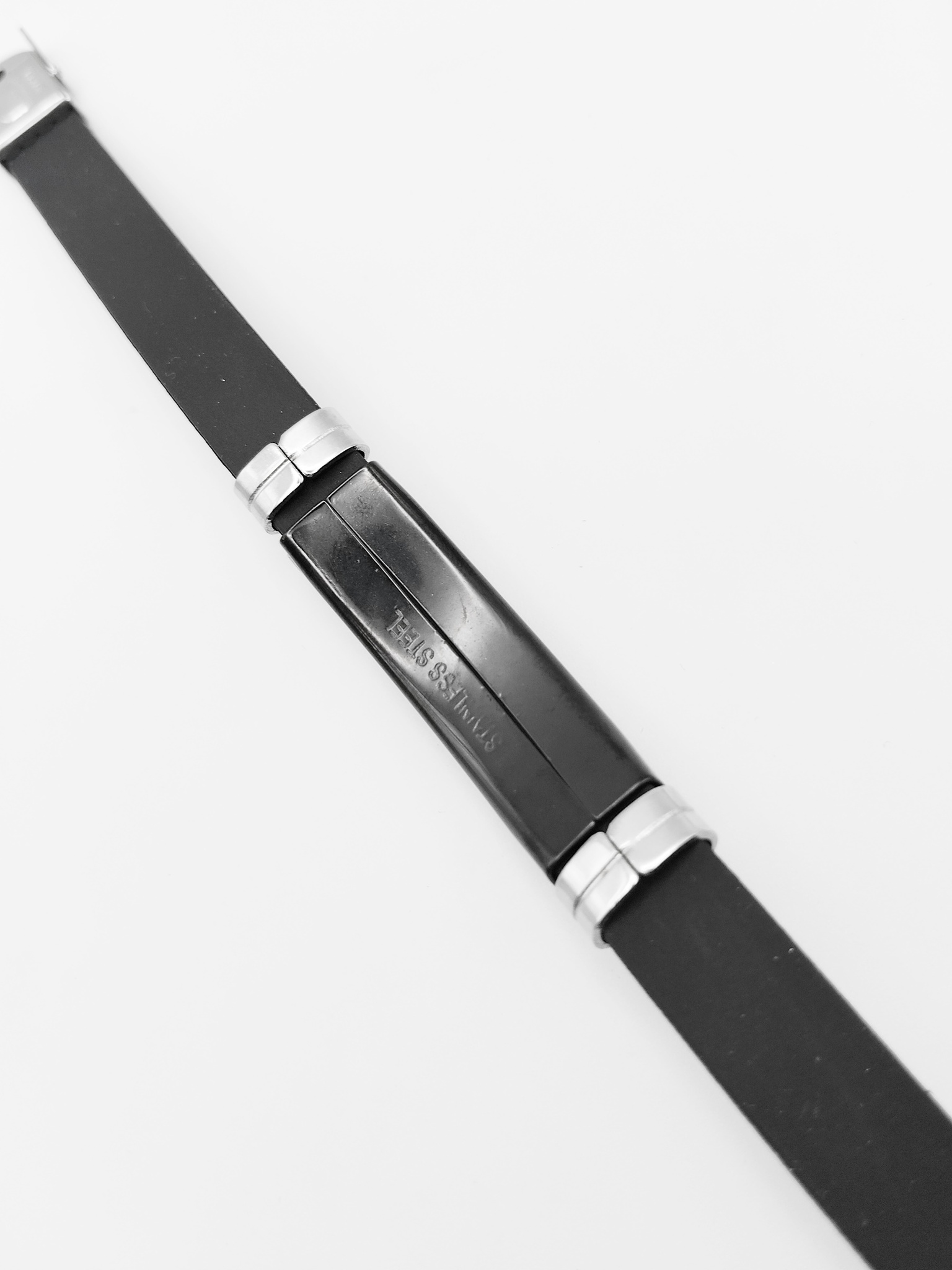 Материал: силикон, толщина 3мм, ширина 10мм. Вставки: сталь 316L. Общая длина браслета 22см. Максимальный обхват руки 21см.
