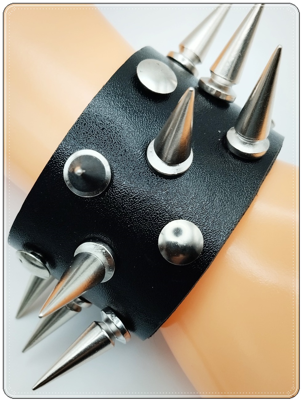 Декорирующие вставки: - шипы 10х25мм. Диаметр круглой заклёпки 10мм.