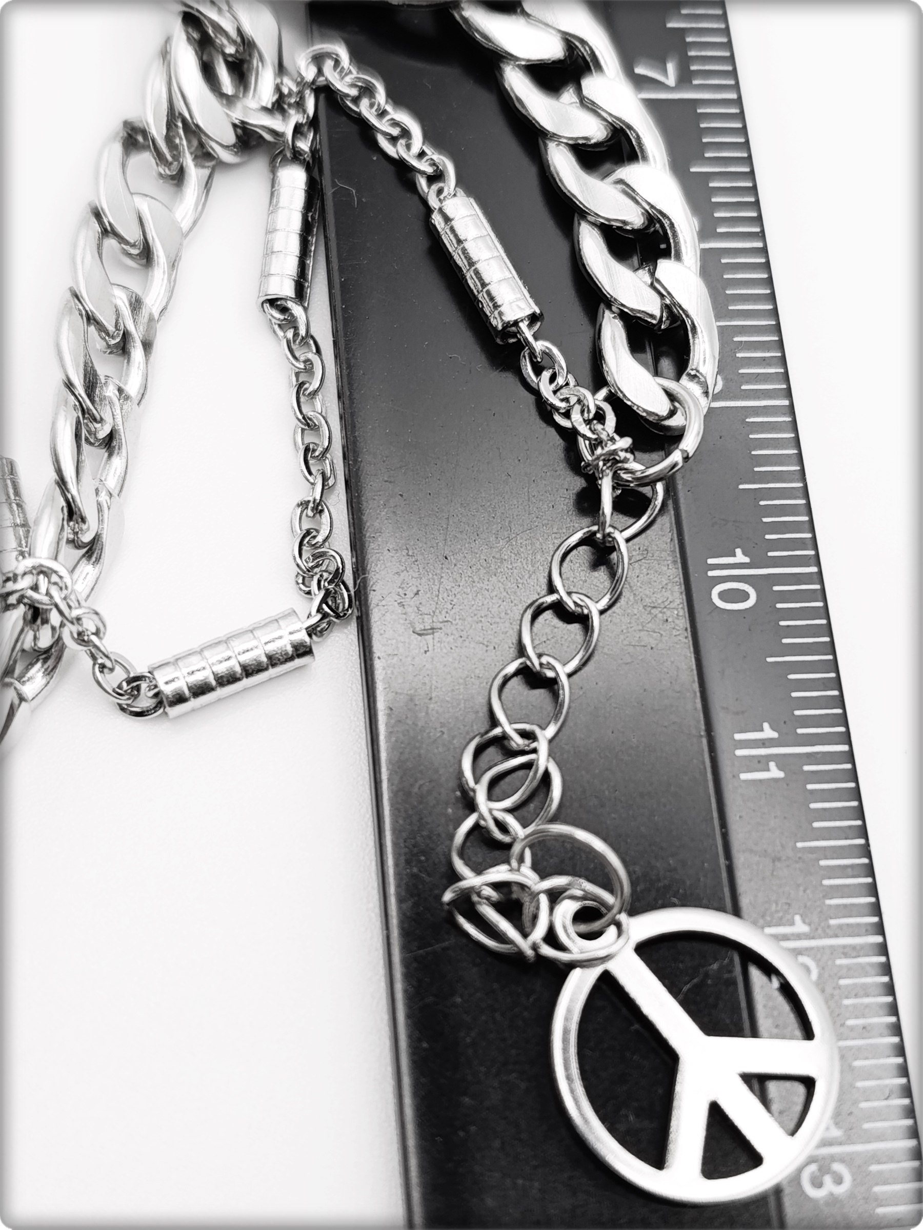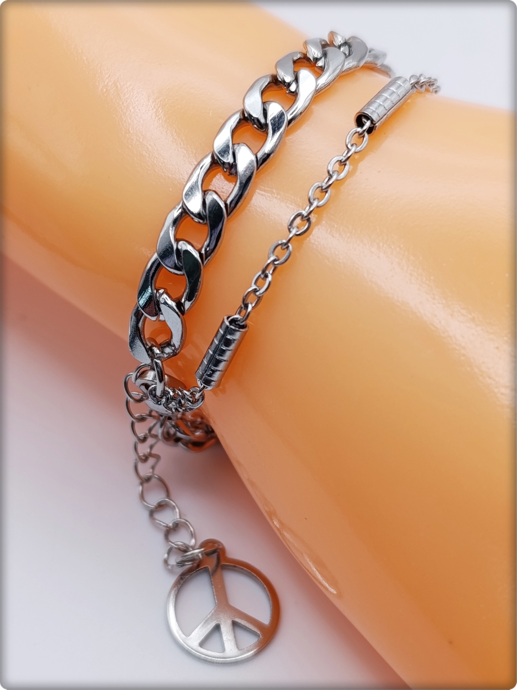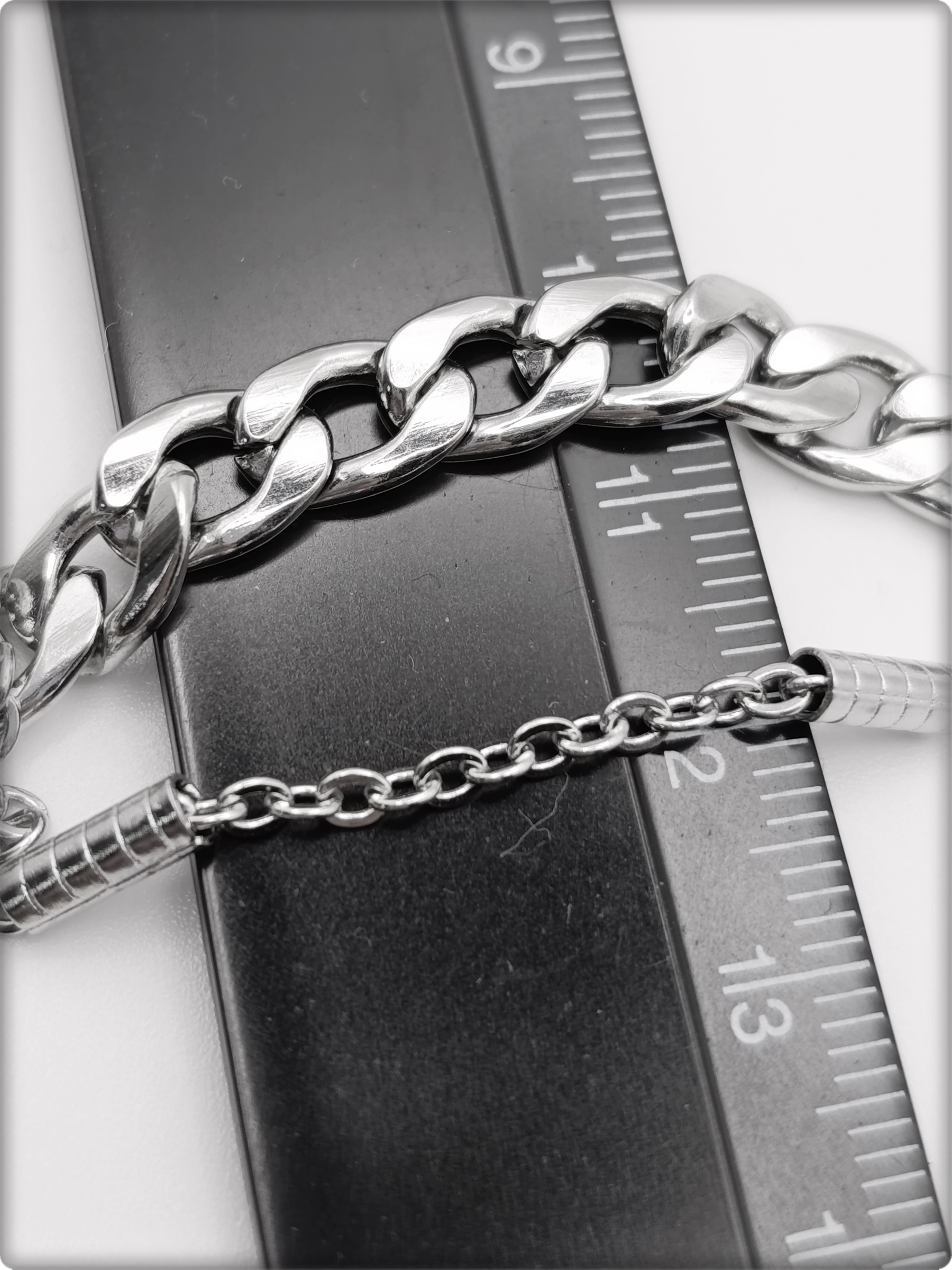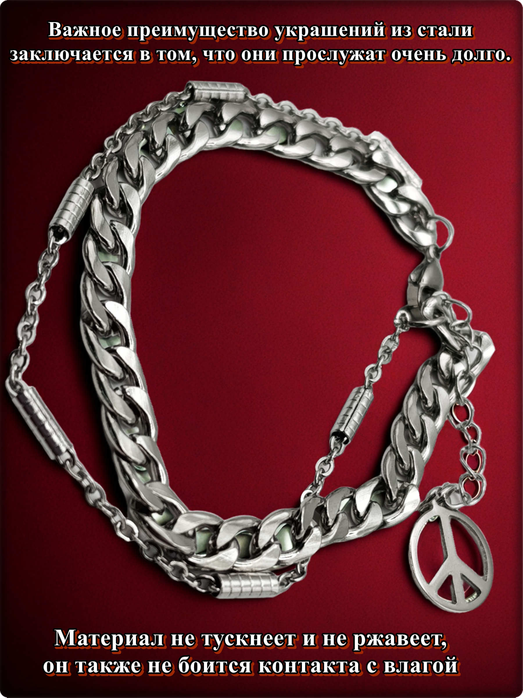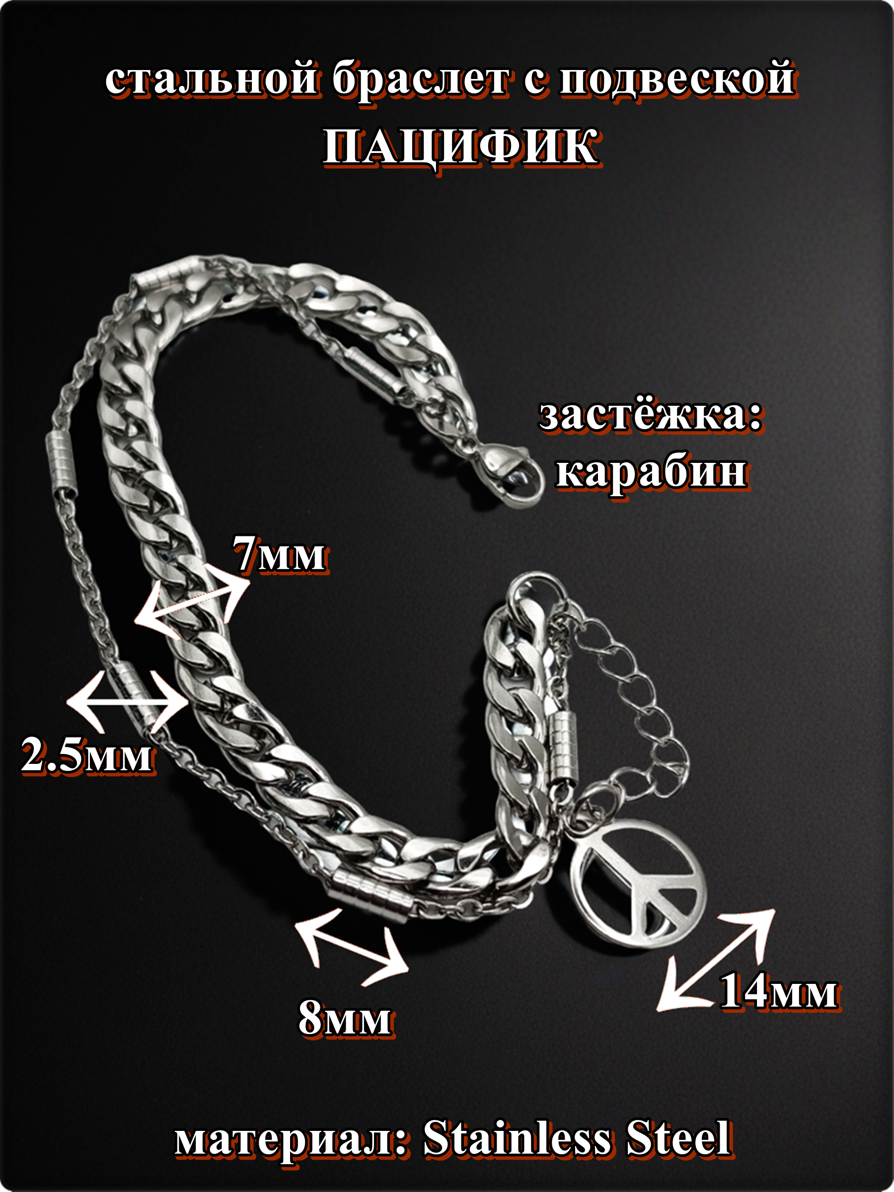Длина браслета 20см + 5см стальная цепочка удлинитель. Ширина звена 7мм. Диаметр подвески 14мм.