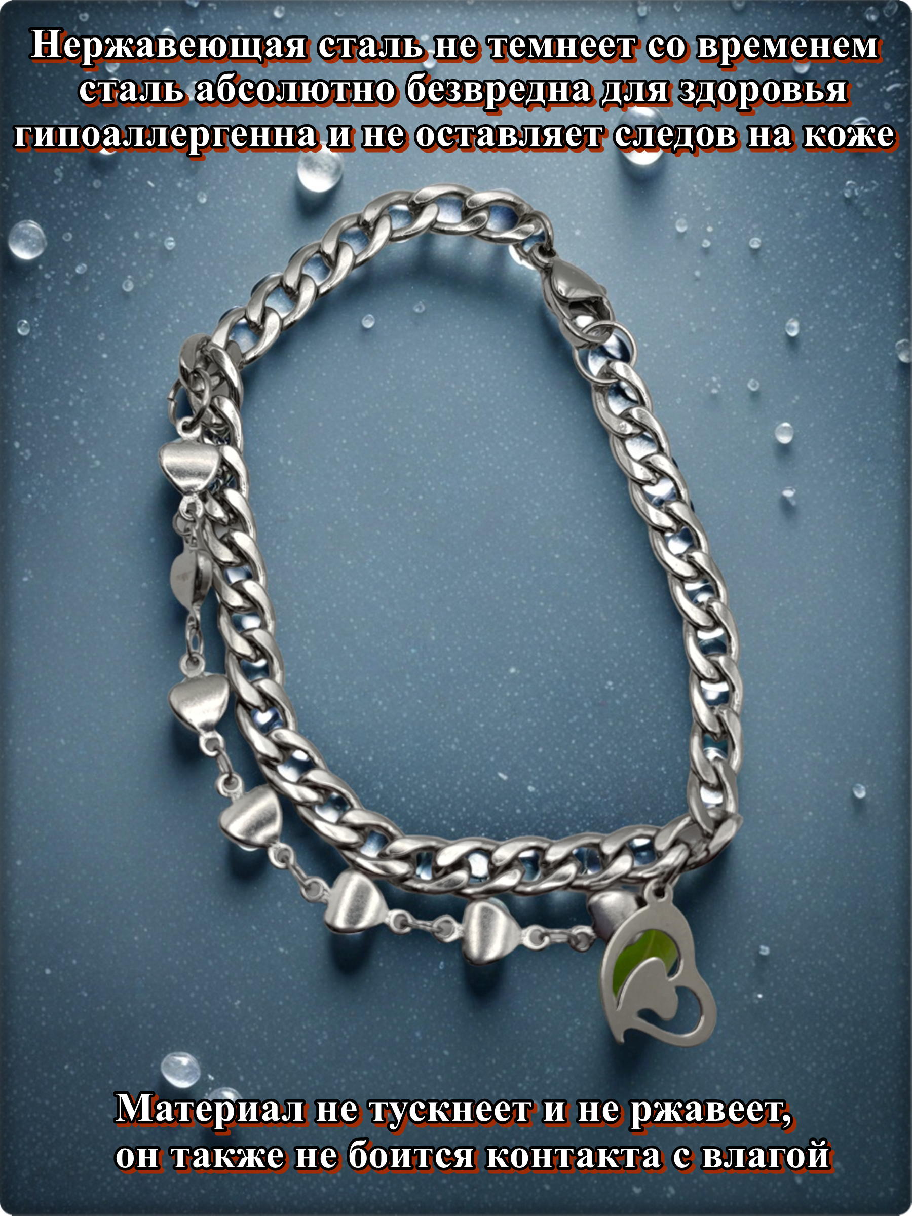 Этот стильный браслет станет верным спутником вашему образу! Он как символ любви к себе – крепкий, надежный и всегда с вами. С ним вы можете быть уверены: ни вода, ни время не навредят вашей красоте. Носи его смело, демонстрируя свой неповторимый стиль и заботу о здоровье своей кожи. Блеск нержавеющей стали подчеркнет вашу индивидуальность и подарит уверенность в каждом дне.