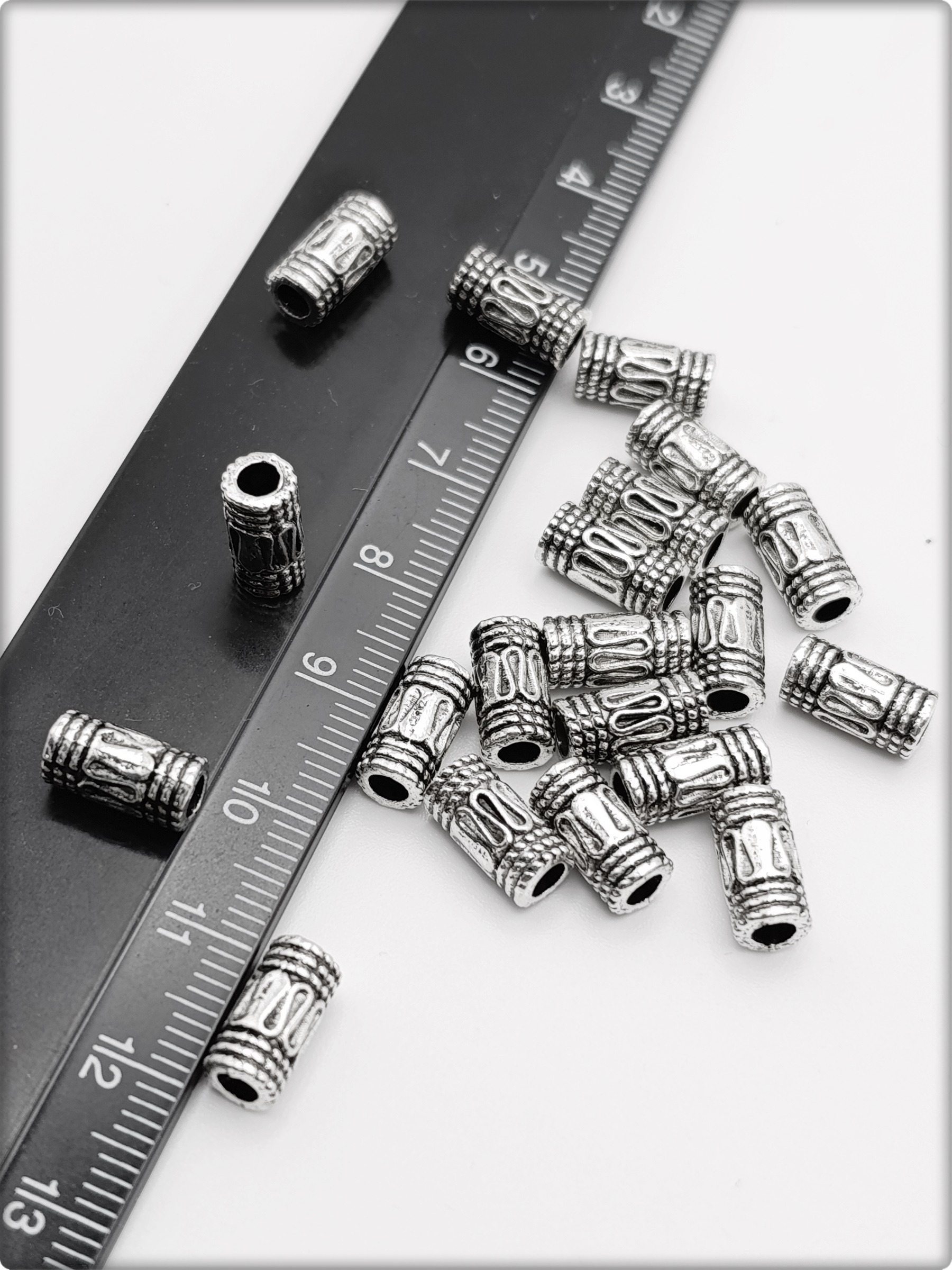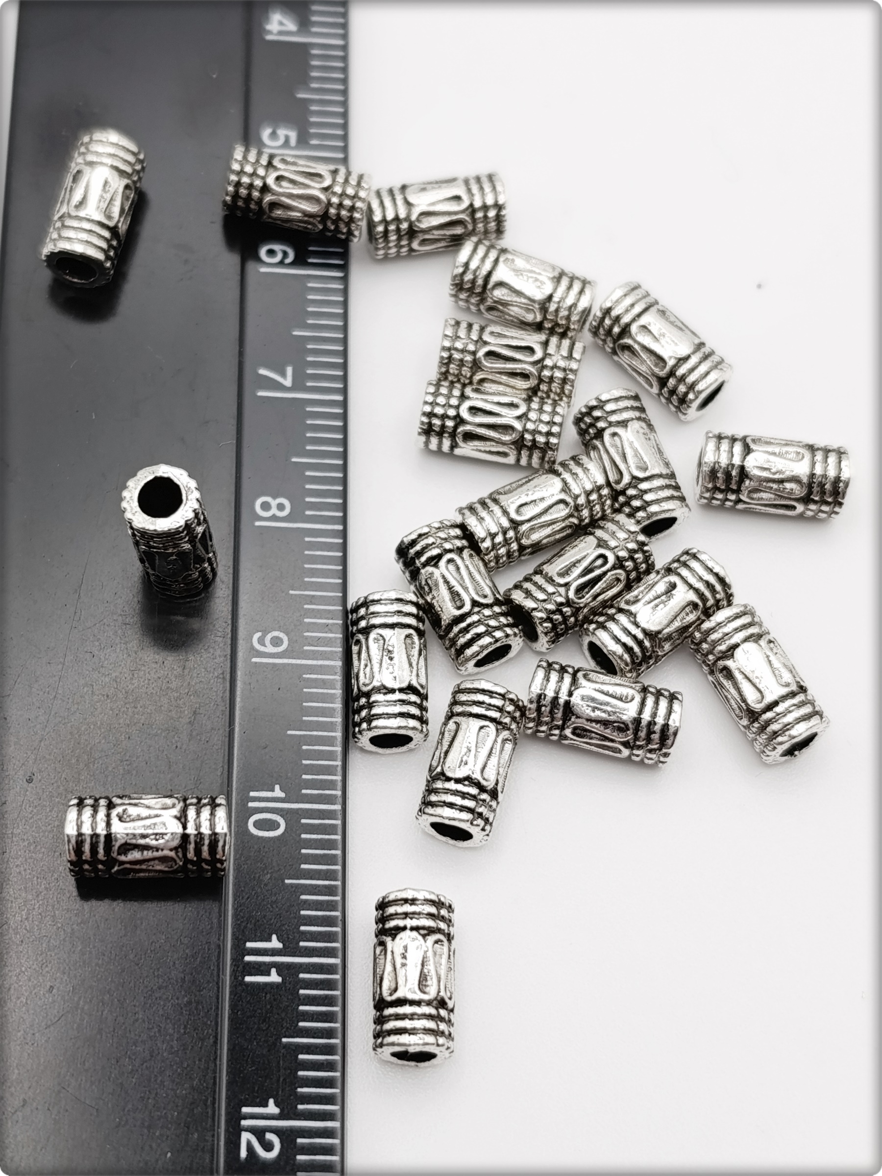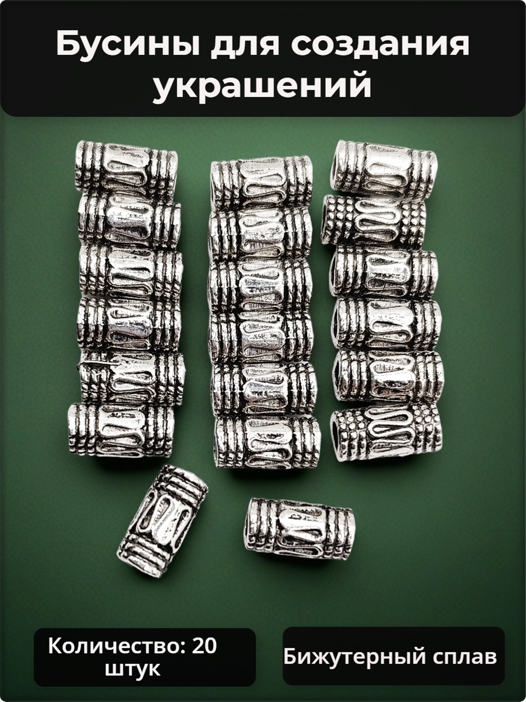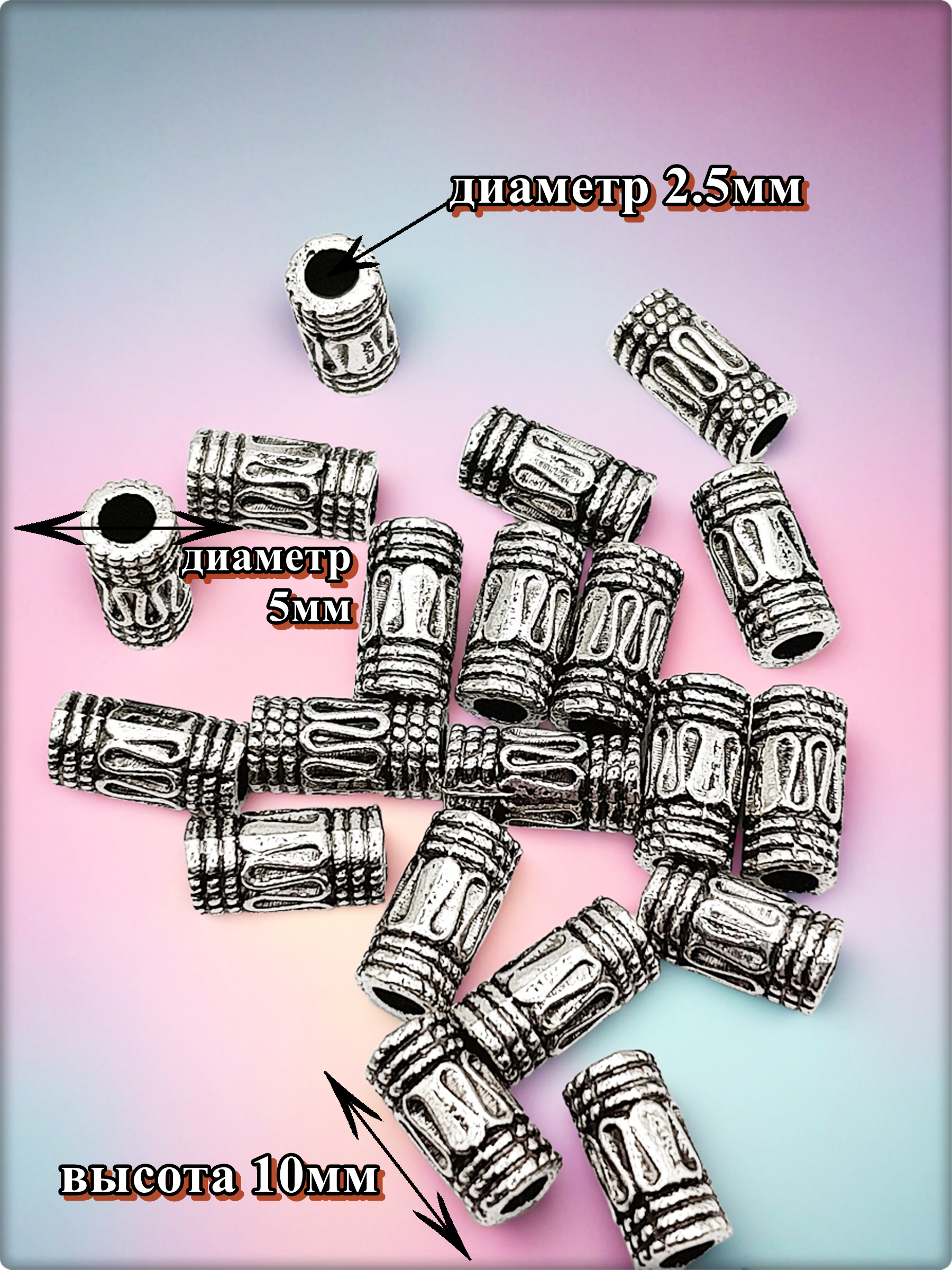 Материал: бижутерный сплав. Высота бусины 10мм, ширина 5мм, внутренний диаметр 2.5мм.