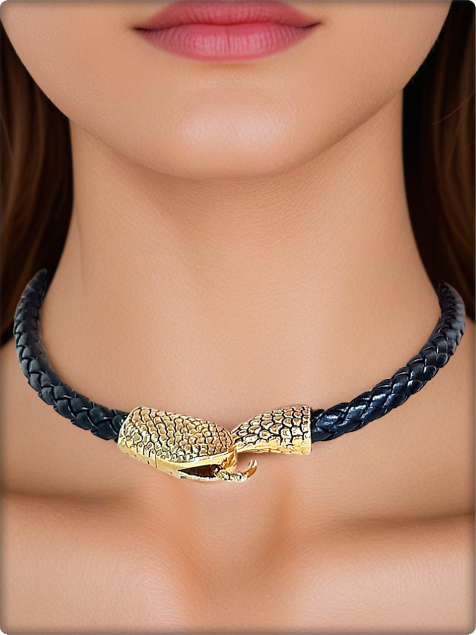 Короткое колье, которое плотно облегает шею, называют чокером, что в переводе с английского означает «душитель». Сегодня женские чокеры на шею воспринимаются как дополнение к образу, яркий акцент и завершающий штрих. Популярность этого короткого ожерелья, украшающего шею, настолько велика, что его можно увидеть и на светских львицах, которые надевают чокеры на торжественные мероприятия, и на девушках-подростках. В зависимости от размеров, цвета и степени изящества их могут носить и девушки, и парни. В женских моделях чокеров может быть дополнительный элемент – подвеска или кулон, который можно менять, создавая каждый день новые незабываемые и стильные образы.