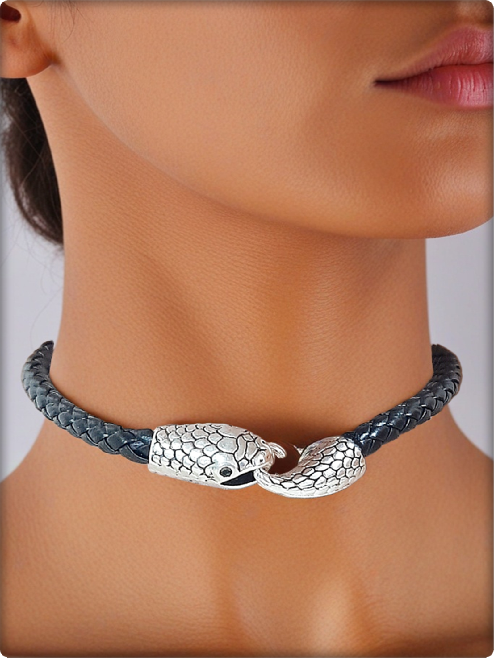 Короткое колье, которое плотно облегает шею, называют чокером, что в переводе с английского означает «душитель». Сегодня женские чокеры на шею воспринимаются как дополнение к образу, яркий акцент и завершающий штрих. Популярность этого короткого ожерелья, украшающего шею, настолько велика, что его можно увидеть и на светских львицах, которые надевают чокеры на торжественные мероприятия, и на девушках-подростках. В зависимости от размеров, цвета и степени изящества их могут носить и девушки, и парни. В женских моделях чокеров может быть дополнительный элемент – подвеска или кулон, который можно менять, создавая каждый день новые незабываемые и стильные образы.