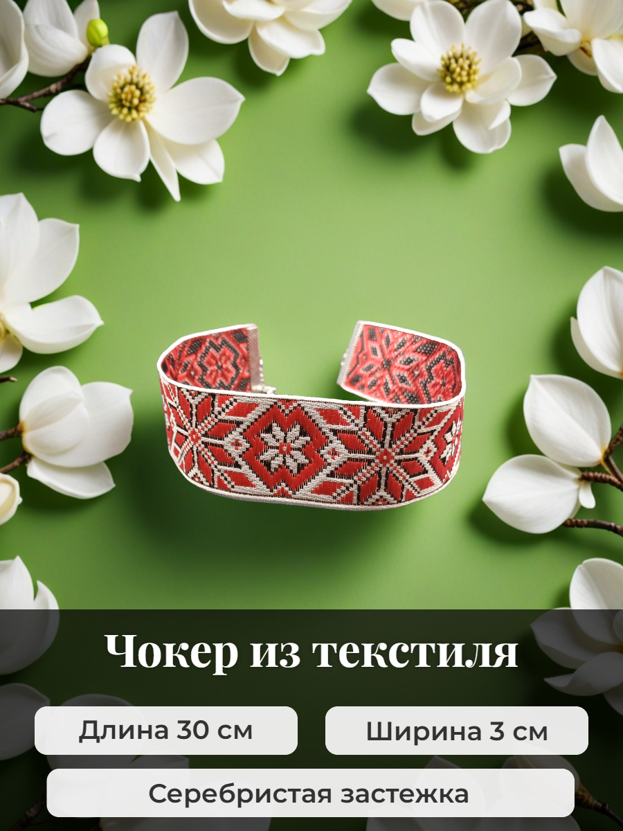Жаккардовый чокер без подвески. Ширина 3 см Качественное, модное украшение на шею.  Длина украшения 30+7 см, ширина 3 см Застежка - карабин серебристого цвета.