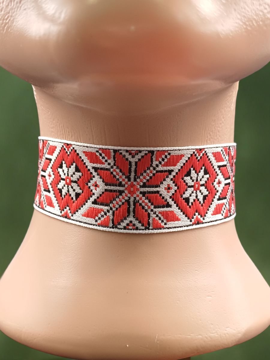Чокер в славянском стиле Алатырь черно-красный 3 см