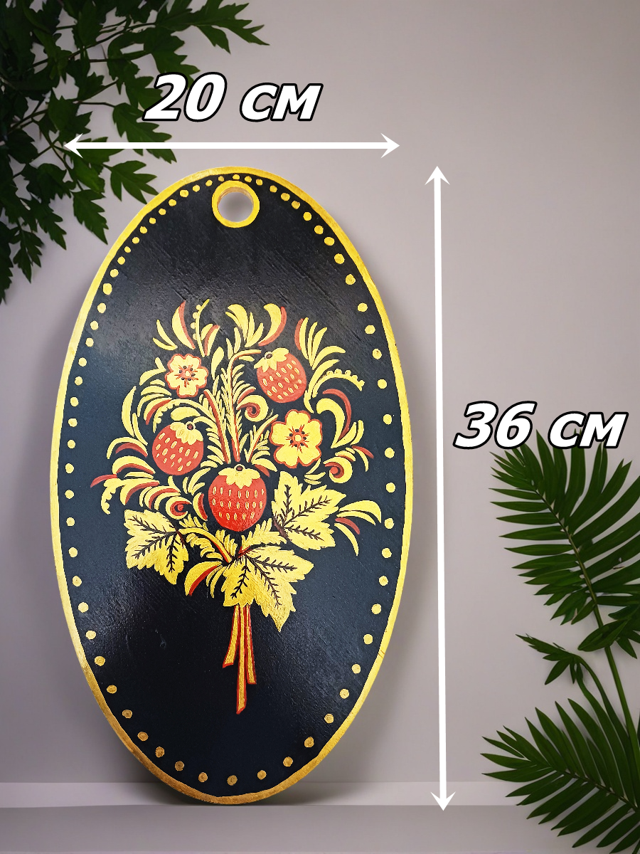 Декоративная разделочная доска с ручной росписью Хохлома. Ширина 20 см, длина 36 см. Она станет прекрасным акцентом интерьера и функциональным элементом кухонного пространства. Ручная работа гарантирует уникальность изделия, подчеркнет вашу индивидуальность и создаст атмосферу тепла и комфорта. Для сохранения красоты изделий ручной работы рекомендуем деликатный уход: исключительно ручная чистка холодной водой, нельзя использовать в посудомоечной машине.