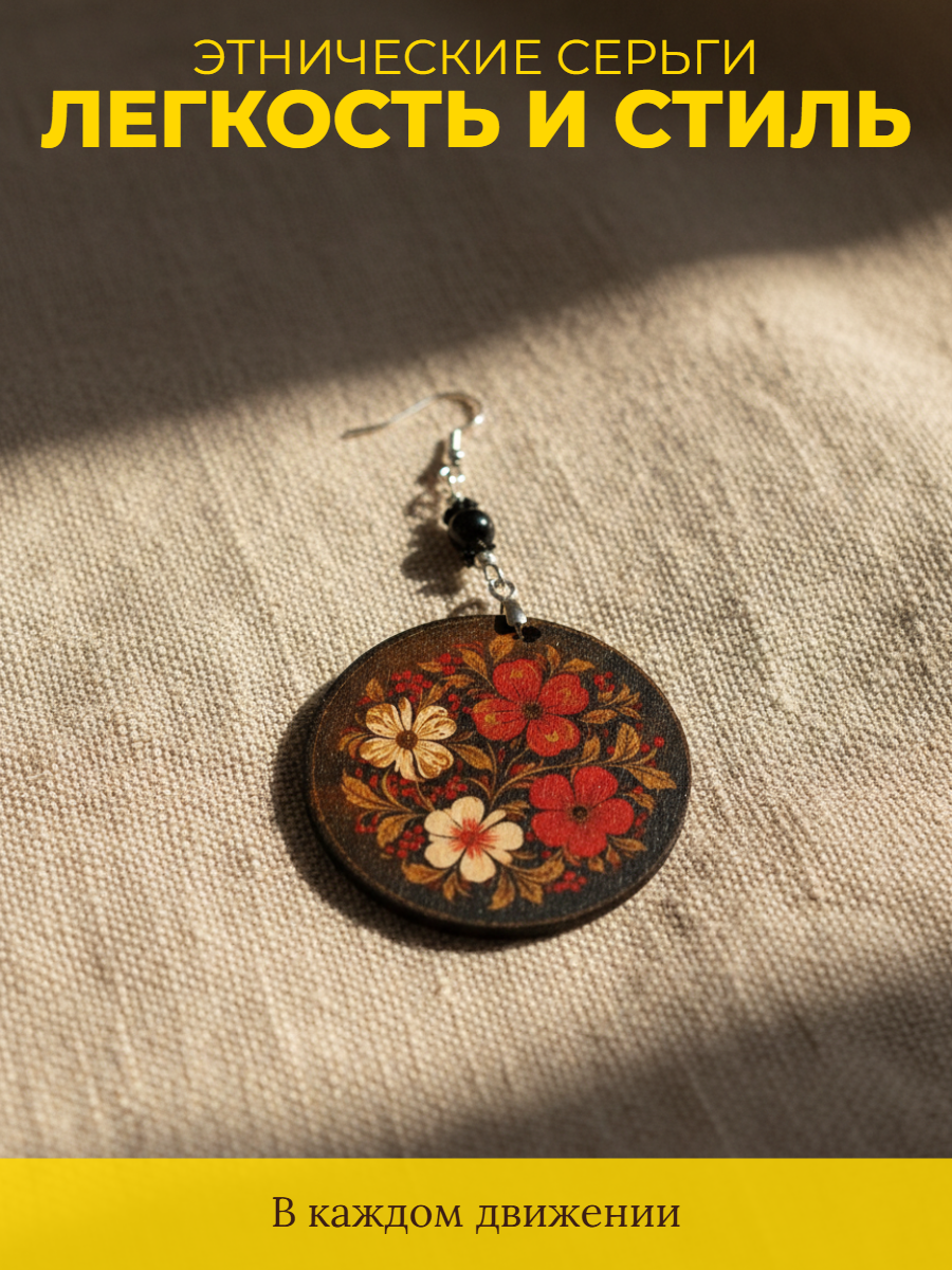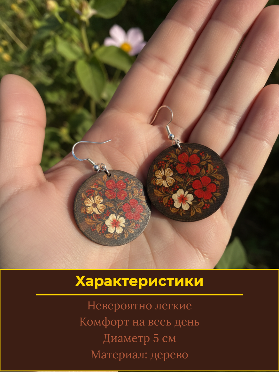 Эти этнические деревянные серьги диаметром 5 см станут оригинальным акцентом вашего образа! Сочетая в себе природное очарование материала и традиционные узоры, они подчеркнут вашу индивидуальность и придадут стилю экзотическую изюминку. Нарядите свои ушки в эти произведения искусства – пусть каждый взгляд останавливается именно на вас!