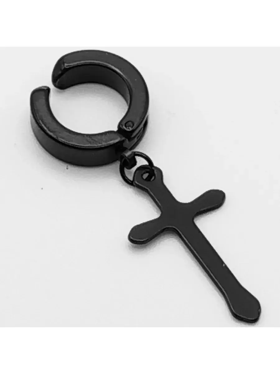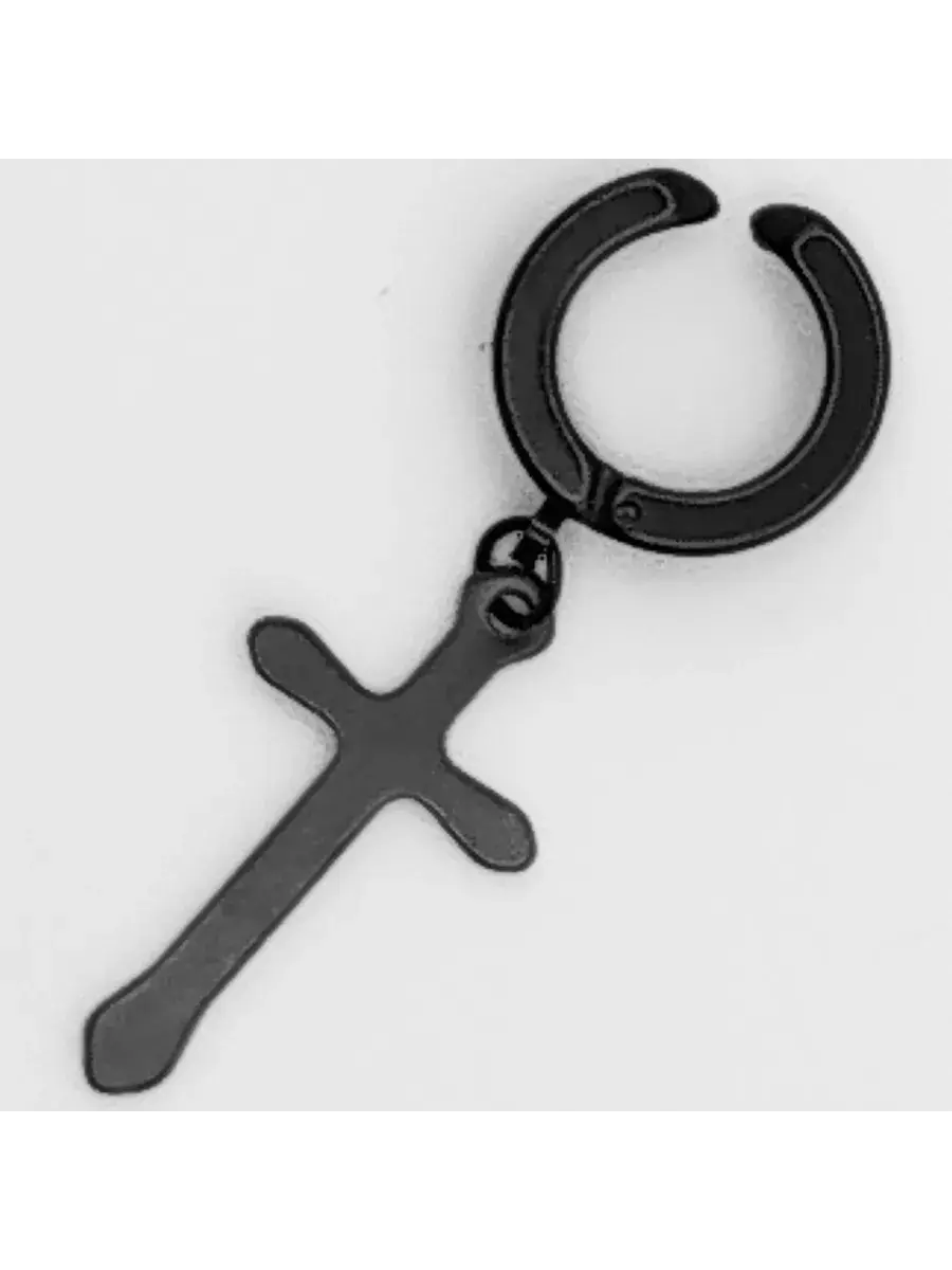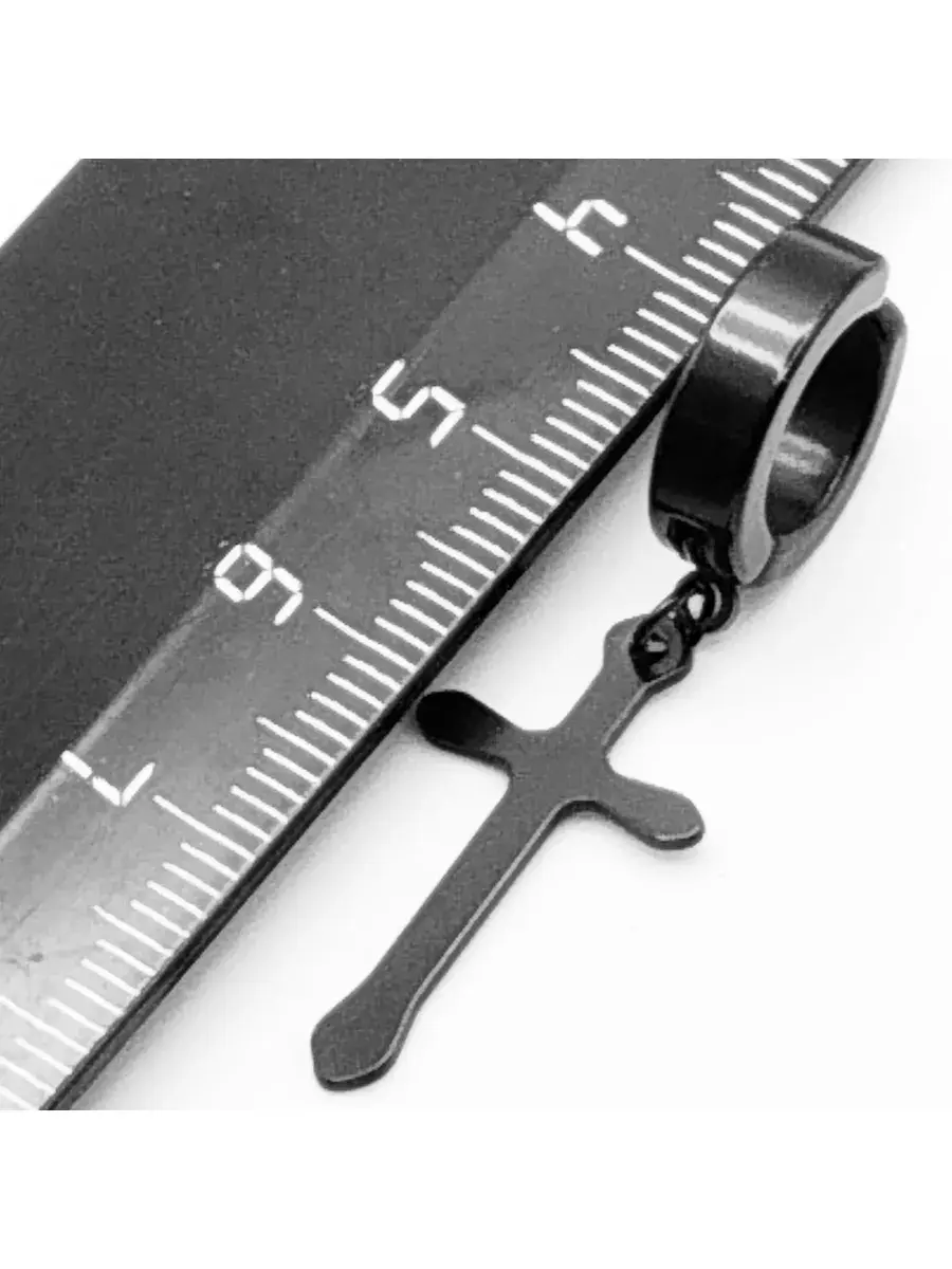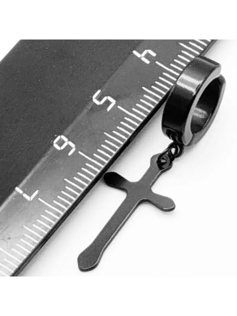 Клипса "Чёрный крест". Цена за штуку!!! Назначение: для имитации прокола и украшения уха без прокола. Материал клипсы: медицинская сталь, титановое покрытие. Диаметр серьги 12 мм, ширина 4 мм. Крест 24х12мм. Важное преимущество украшений из стали заключается в том, что они прослужат очень долго. Материал не тускнеет и не ржавеет, он также не боится контакта с влагой, поэтому в украшениях можно даже принимать ванную.Стоит отметить и то, что украшения из этого сплава подходят даже людям, которые склонны к аллергическим реакциям. В составе нет никеля. Именно он вызывает раздражение на коже.