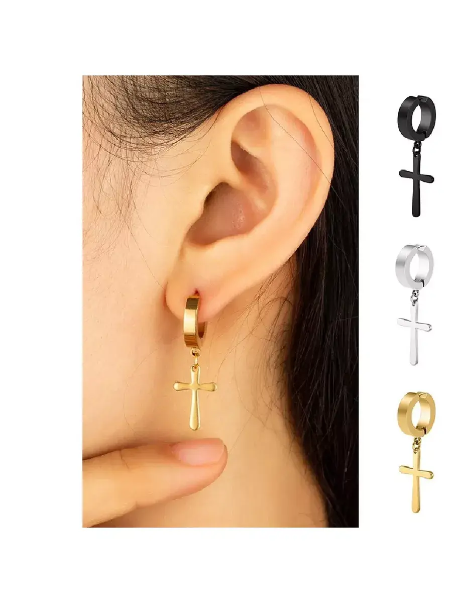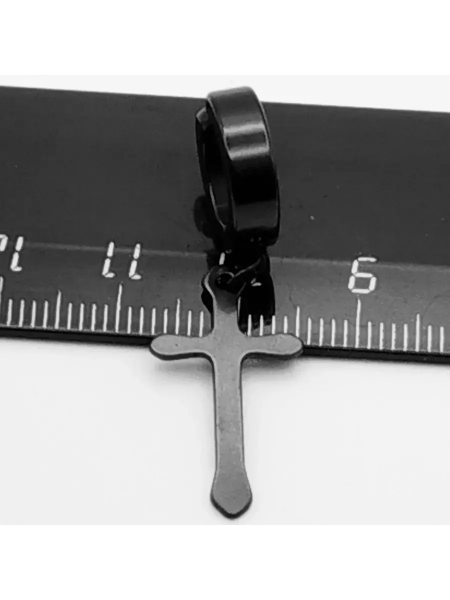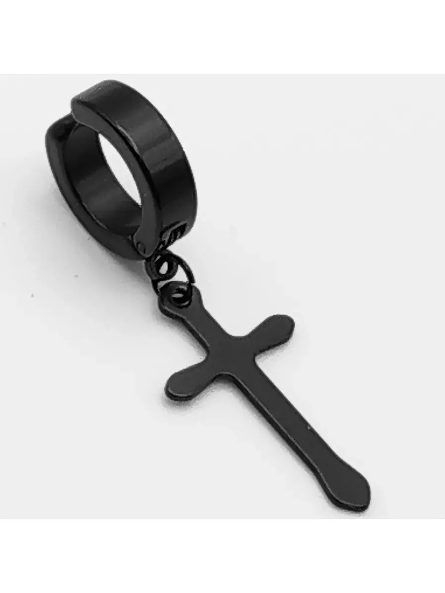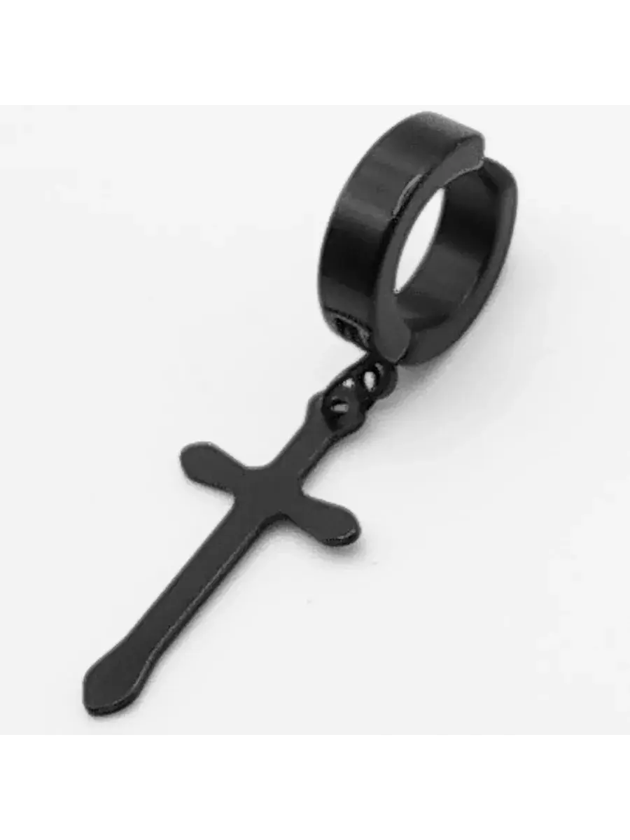 Клипса "Чёрный крест". Цена за штуку!!! Назначение: для имитации прокола и украшения уха без прокола. Материал клипсы: медицинская сталь, титановое покрытие. Диаметр серьги 12 мм, ширина 4 мм. Крест 24х12мм. Важное преимущество украшений из стали заключается в том, что они прослужат очень долго. Материал не тускнеет и не ржавеет, он также не боится контакта с влагой, поэтому в украшениях можно даже принимать ванную.Стоит отметить и то, что украшения из этого сплава подходят даже людям, которые склонны к аллергическим реакциям. В составе нет никеля. Именно он вызывает раздражение на коже.