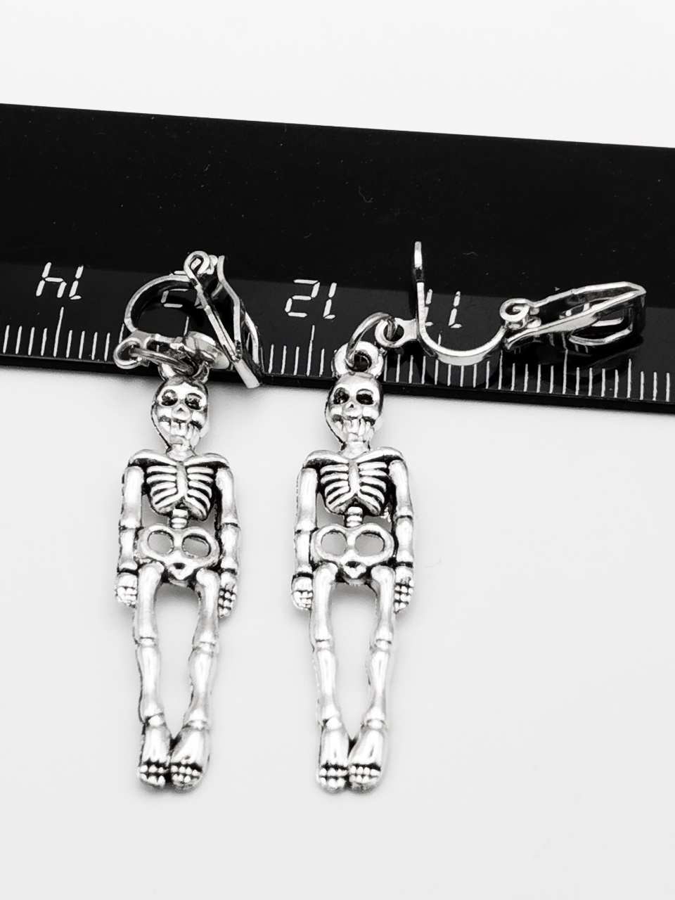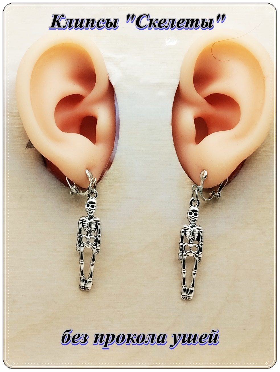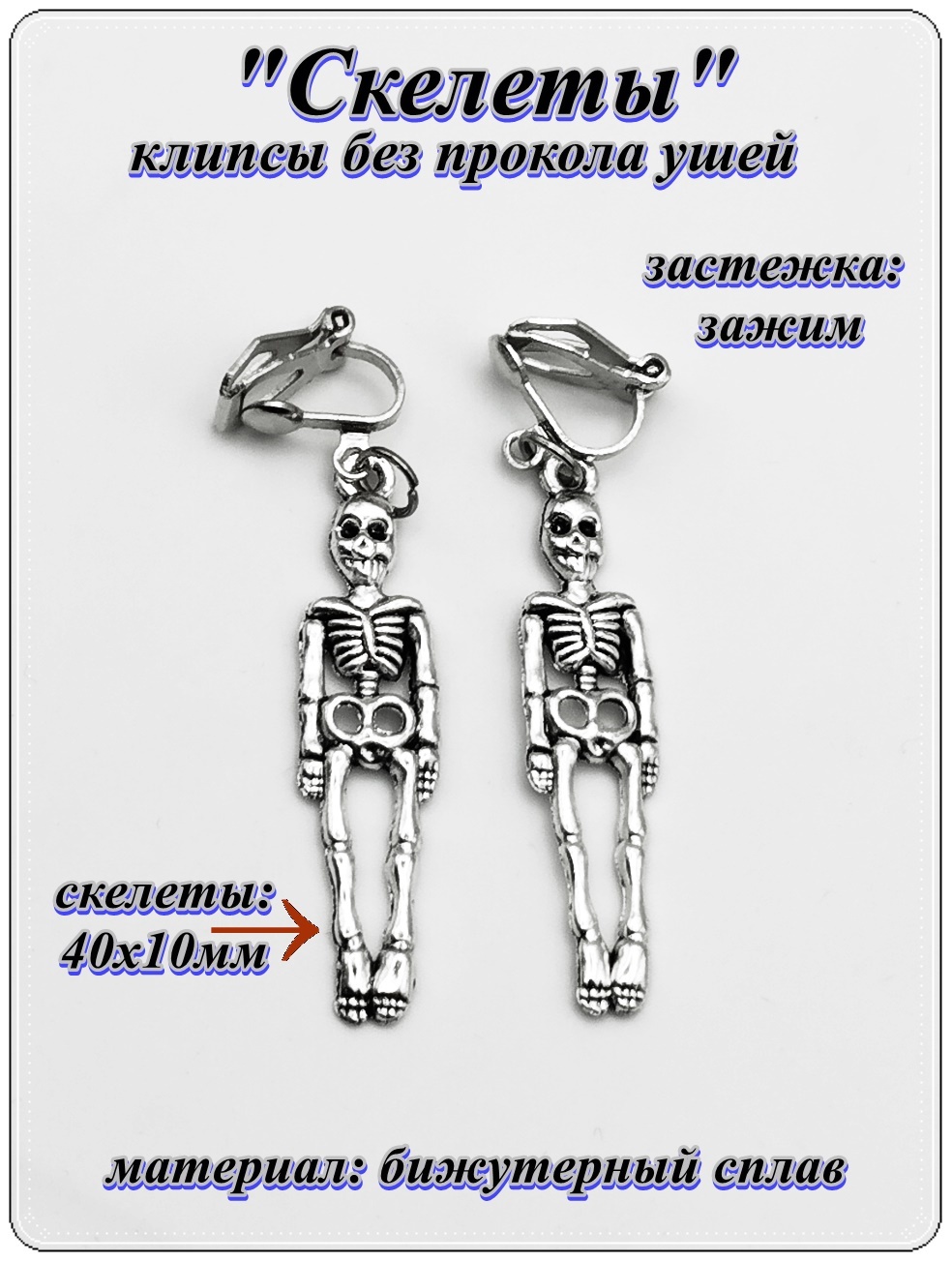 Серьги клипсы (без прокола) с подвеской "Скелеты".