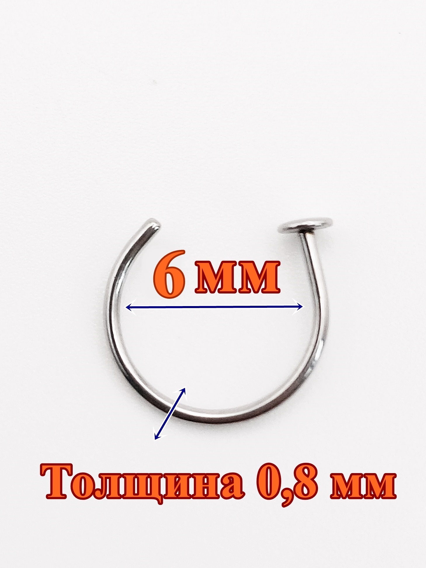 Кольца для пирсинга носа с фиксатором. Сталь 316L. Материал: медицинская сталь. Размер 0,8х6мм. Преимущество изогнутой нострилы в том, что она не выпадает из области пирсинга.