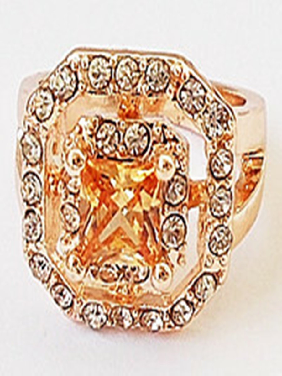 Классическое женское кольцо-перстень украшено мелкими прозрачными кристаллами по краям изделия. В центре колечка крупный кристалл. (цвет: шампанское). Размер печатки - 1,7 см