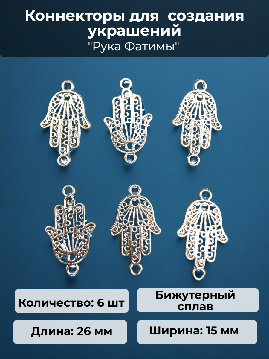 Погрузитесь в мир творчества и создайте уникальные украшения своими руками! Коннекторы «Рука Фатимы» — ваш надежный помощник в воплощении дизайнерских идей. Удобны в использовании, надежны и эстетичны. Добавьте индивидуальности своему образу или порадуйте близких оригинальными подарками. Откройте дверь вдохновения уже сегодня!