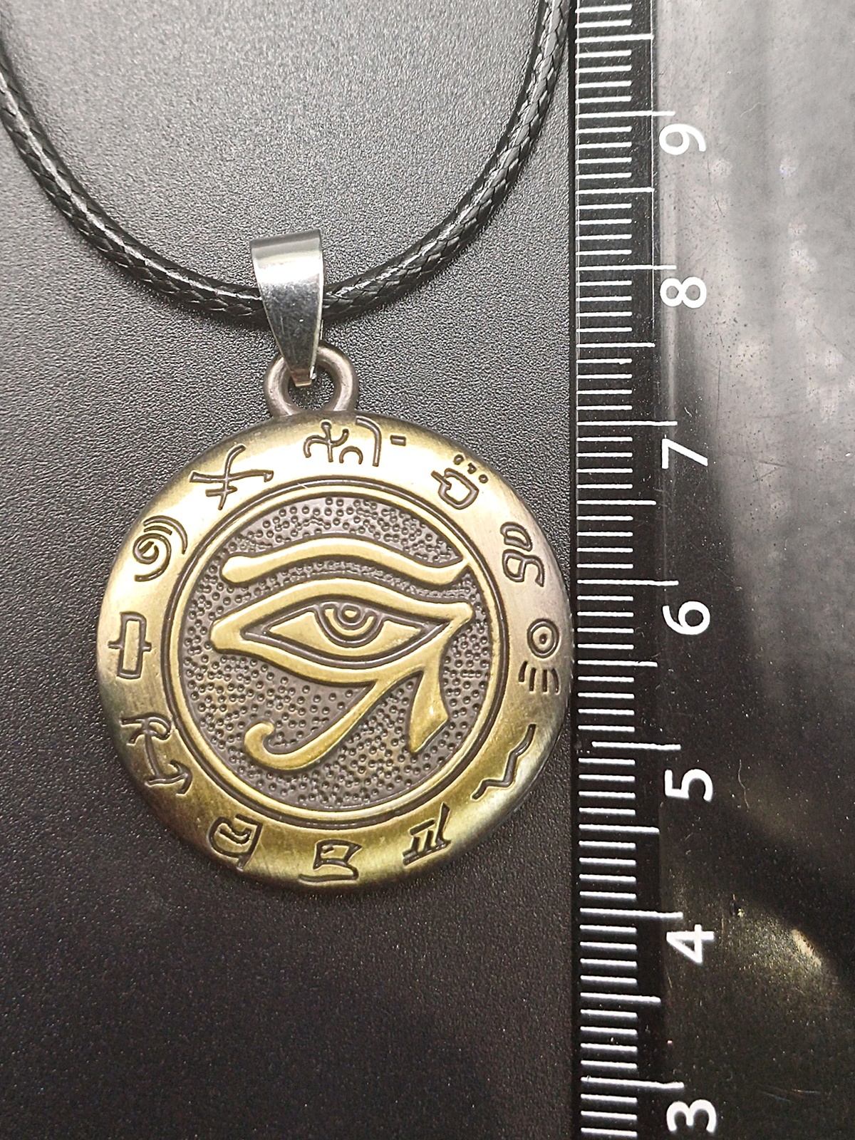 Материал - металл. Шнурок в комплекте, длина 50 см. Длина - 4 см. Ширина - 3,5 см. Этот необычный знак был одним из основных символов древнего искусства Египта. Глаз Гора можно встретить на страницах египетской «Книги Мертвых». Всевидящее великое око Гора - солнечного божества, сына, рожденного от Осириса и Исиды, является символом победы над узами смерти, удачи и проведения. Символ убережет от завистливых глаз, недобрых мыслей и намерений гостей, защитит семью от порчи. Материал, на котором изображен символ, может быть любым: от бумаги до золота. Глаз гора — прежде всего амулет защиты, но помимо защиты он символизирует и другие вещи: притягивает удачу; исцеляет; развивает интуицию и ясновидение; развивает чувственное восприятие мира; дает проницательность; наделяет духовной силой; укрепляет волю. Как эти качества могут повлиять на судьбу человека? Если носить амулет гора постоянно, то человек начинает более тонко чувствовать ситуацию, у него развивается способность видеть положение дел с разных сторон и подходить к решению вопросов самым верным путем. Амулет Всевидящее око помогает выбрать свой жизненный путь, верное его направление. Развитие воли и духовной силы позволяет добиться высокого положения в обществе, карьере и бизнесе. Также эти качества помогут правильно управлять своими подчиненными и вести диалог с партнерами, добиваться своих целей.
