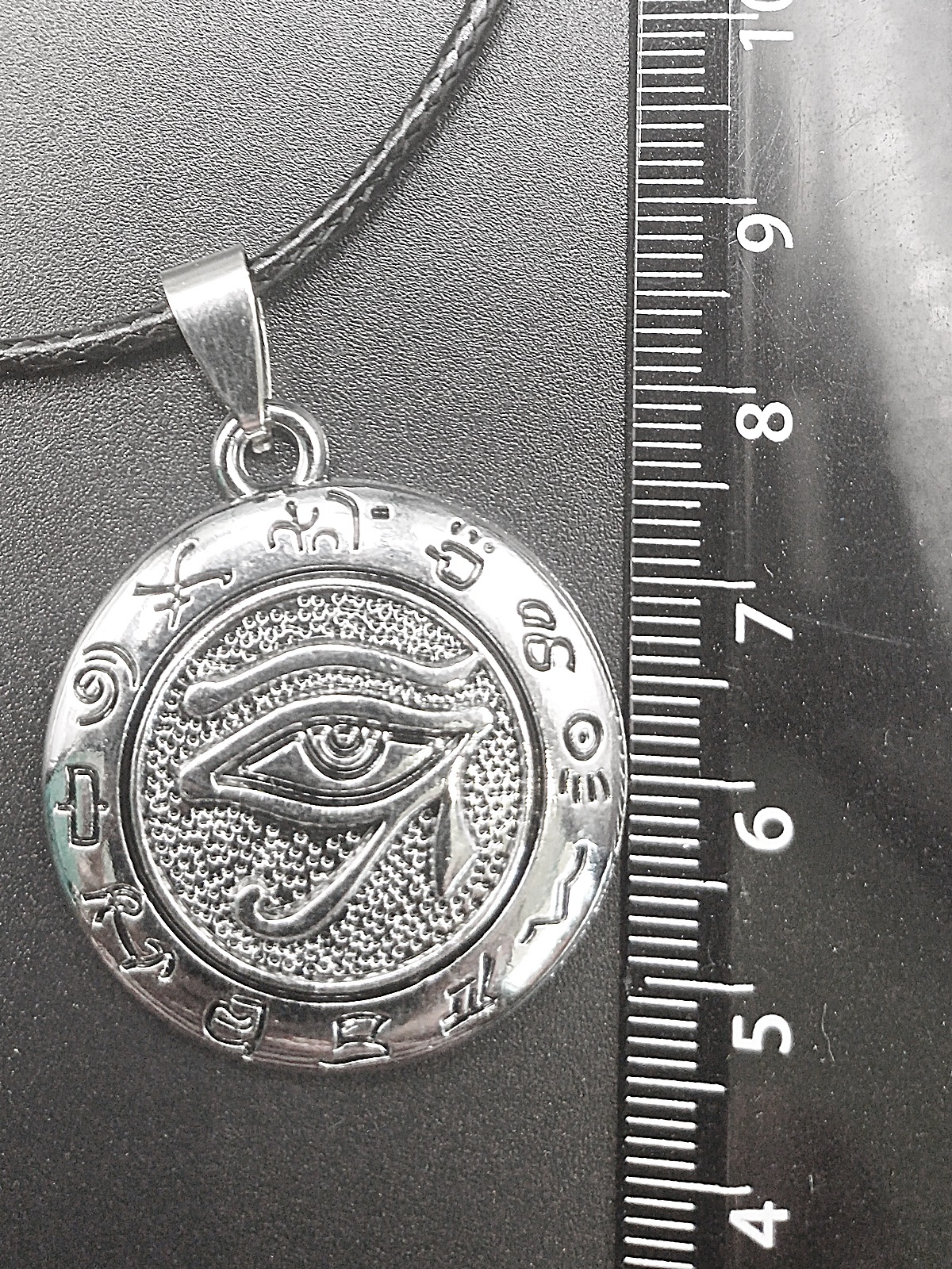 Материал - металл. Шнурок в комплекте, длина 50 см. Длина - 4 см. Ширина - 3,5 см. Этот необычный знак был одним из основных символов древнего искусства Египта. Глаз Гора можно встретить на страницах египетской «Книги Мертвых». Всевидящее великое око Гора - солнечного божества, сына, рожденного от Осириса и Исиды, является символом победы над узами смерти, удачи и проведения. Символ убережет от завистливых глаз, недобрых мыслей и намерений гостей, защитит семью от порчи. Материал, на котором изображен символ, может быть любым: от бумаги до золота. Глаз гора — прежде всего амулет защиты, но помимо защиты он символизирует и другие вещи: притягивает удачу; исцеляет; развивает интуицию и ясновидение; развивает чувственное восприятие мира; дает проницательность; наделяет духовной силой; укрепляет волю. Как эти качества могут повлиять на судьбу человека? Если носить амулет гора постоянно, то человек начинает более тонко чувствовать ситуацию, у него развивается способность видеть положение дел с разных сторон и подходить к решению вопросов самым верным путем. Амулет Всевидящее око помогает выбрать свой жизненный путь, верное его направление. Развитие воли и духовной силы позволяет добиться высокого положения в обществе, карьере и бизнесе. Также эти качества помогут правильно управлять своими подчиненными и вести диалог с партнерами, добиваться своих целей.