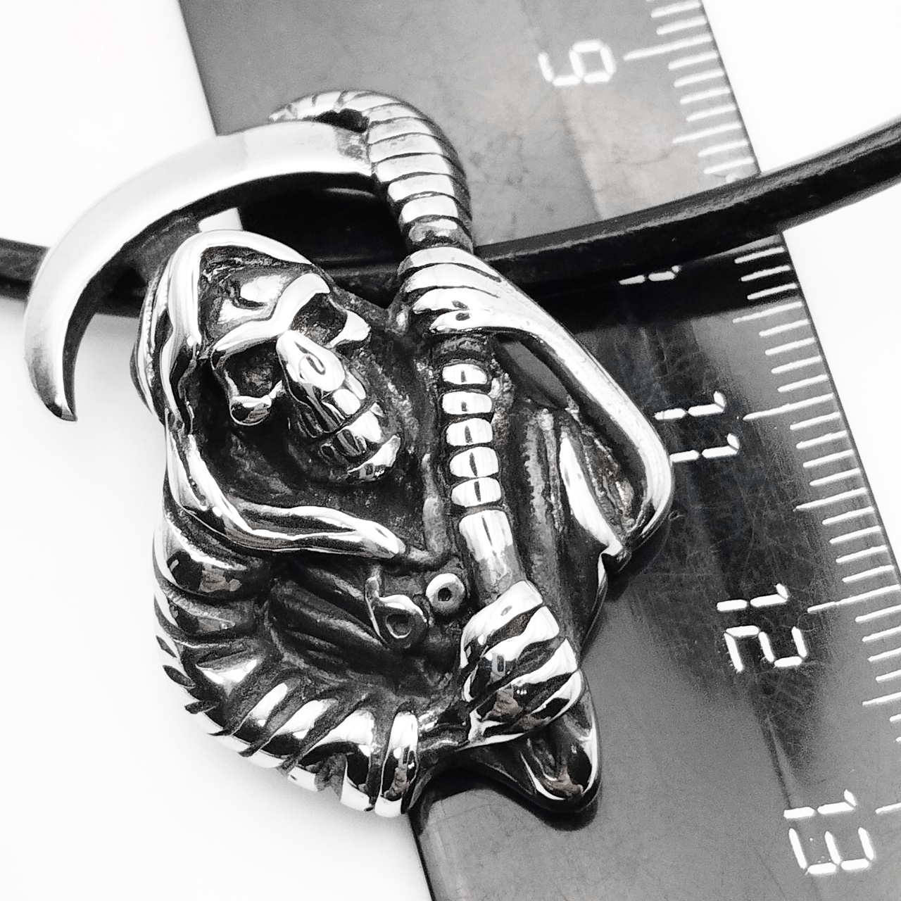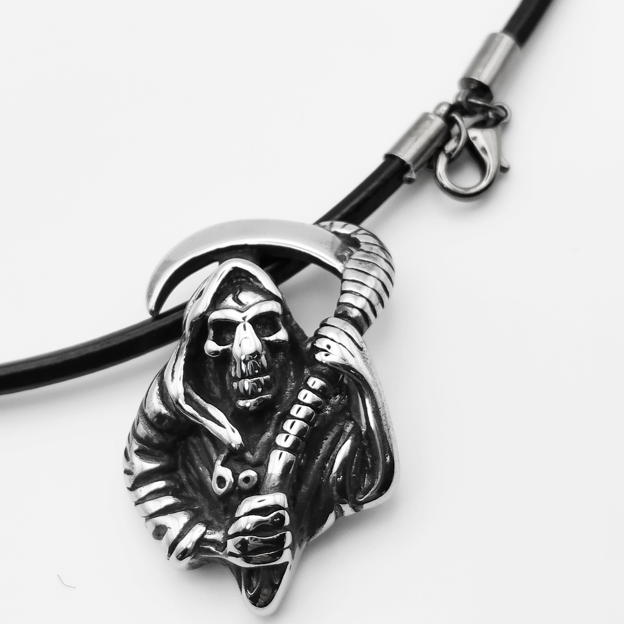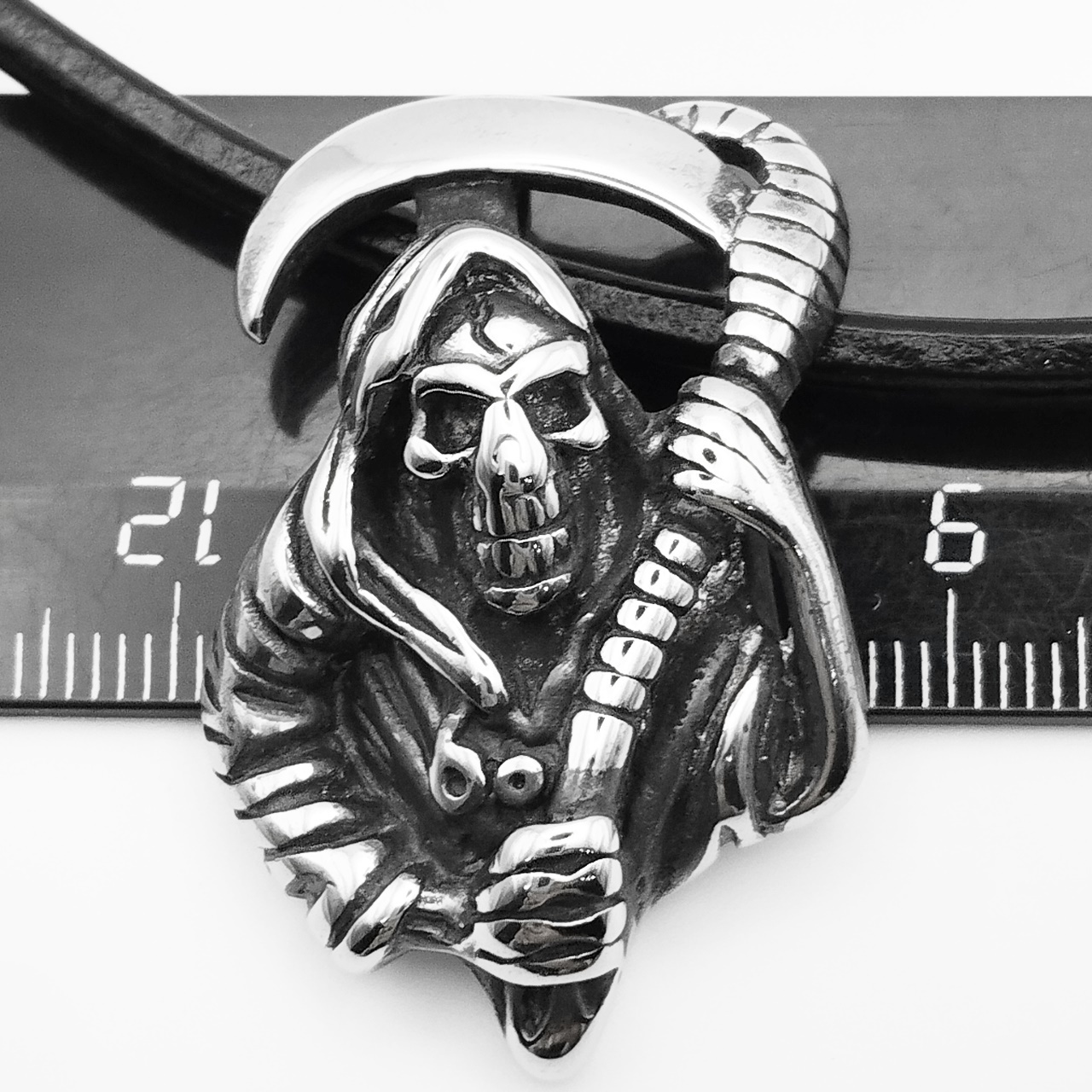 Кулон "смерть с косой" : материал -медицинская сталь (не темнеет, не ржавеет), высота кулона 40мм, ширина 26мм.