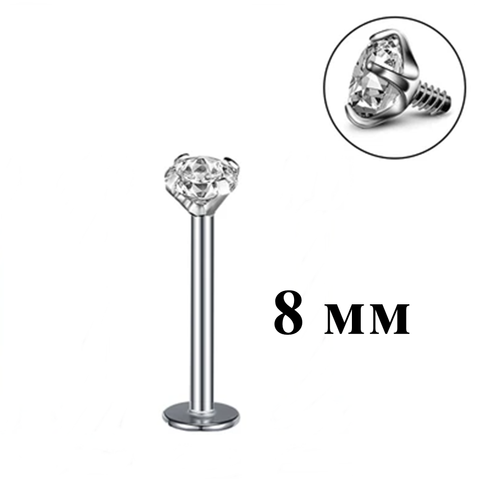 Украшение для пирсинга губы с кристаллом 3 мм. Медицинская сталь. Назначение: для украшения пирсинга губы. Материал: медицинская сталь. диаметр кристалла 3 мм. Длина штанги 8 мм, толщина 1,2 мм.