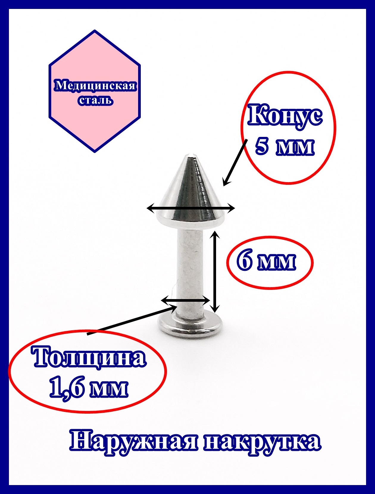 Серьга для пирсинга губы (для прокола) из медицинской стали.