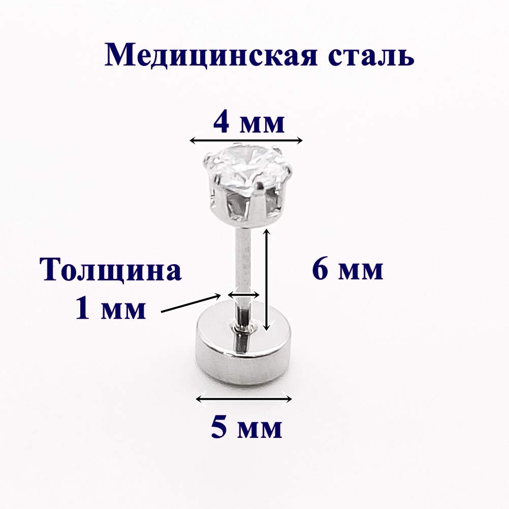 Микроштанга для пирсинга уха с кристаллом. ЦЕНА ЗА ОДНУ ШТУКУ! Назначение: для украшения пирсинга уха. Материал: медицинская сталь. диаметр кристалла 4 мм. Длина штанги 6 мм, толщина 1 мм.