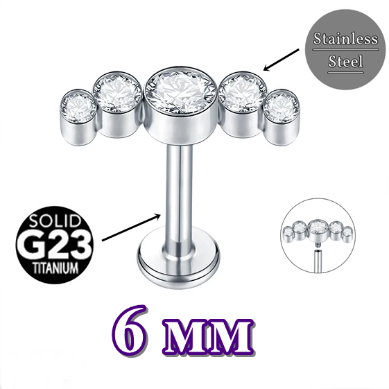 Микроштанга с 5 кристаллами для пирсинга ушей