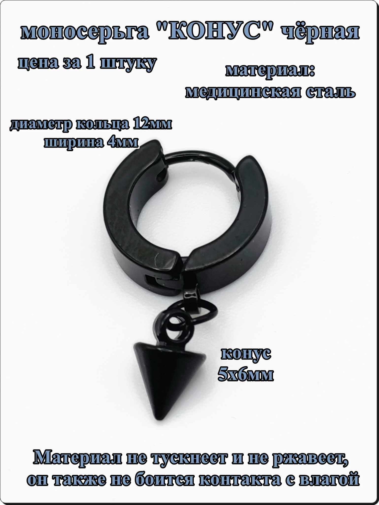 Моносерьга "Конус" для прокола и украшения пирсинга уха.