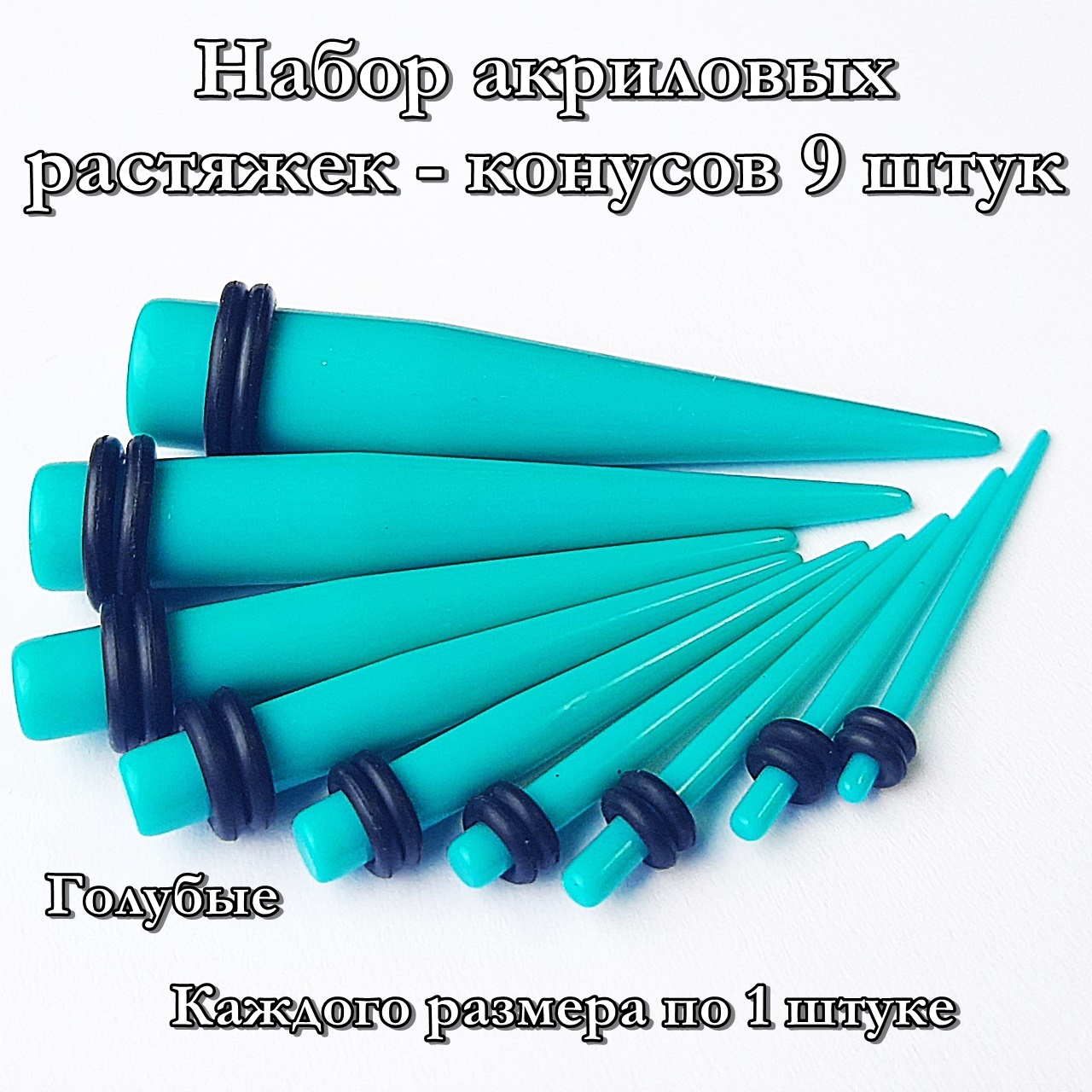 Материал акрил, в наборе 9 штук, по 1 штуке каждого размера. Размеры в наборе 1.6 мм, 2 мм, 2.4 мм, 3.2 мм, 4 мм, 5 мм, 6 мм, 8 мм, 10 мм. Цвет голубой