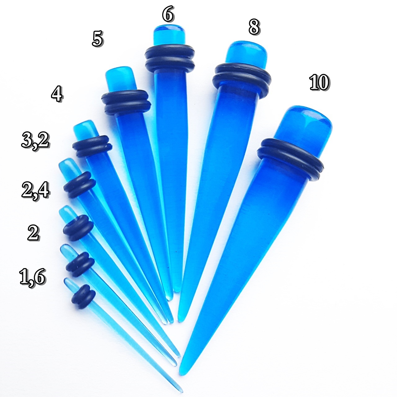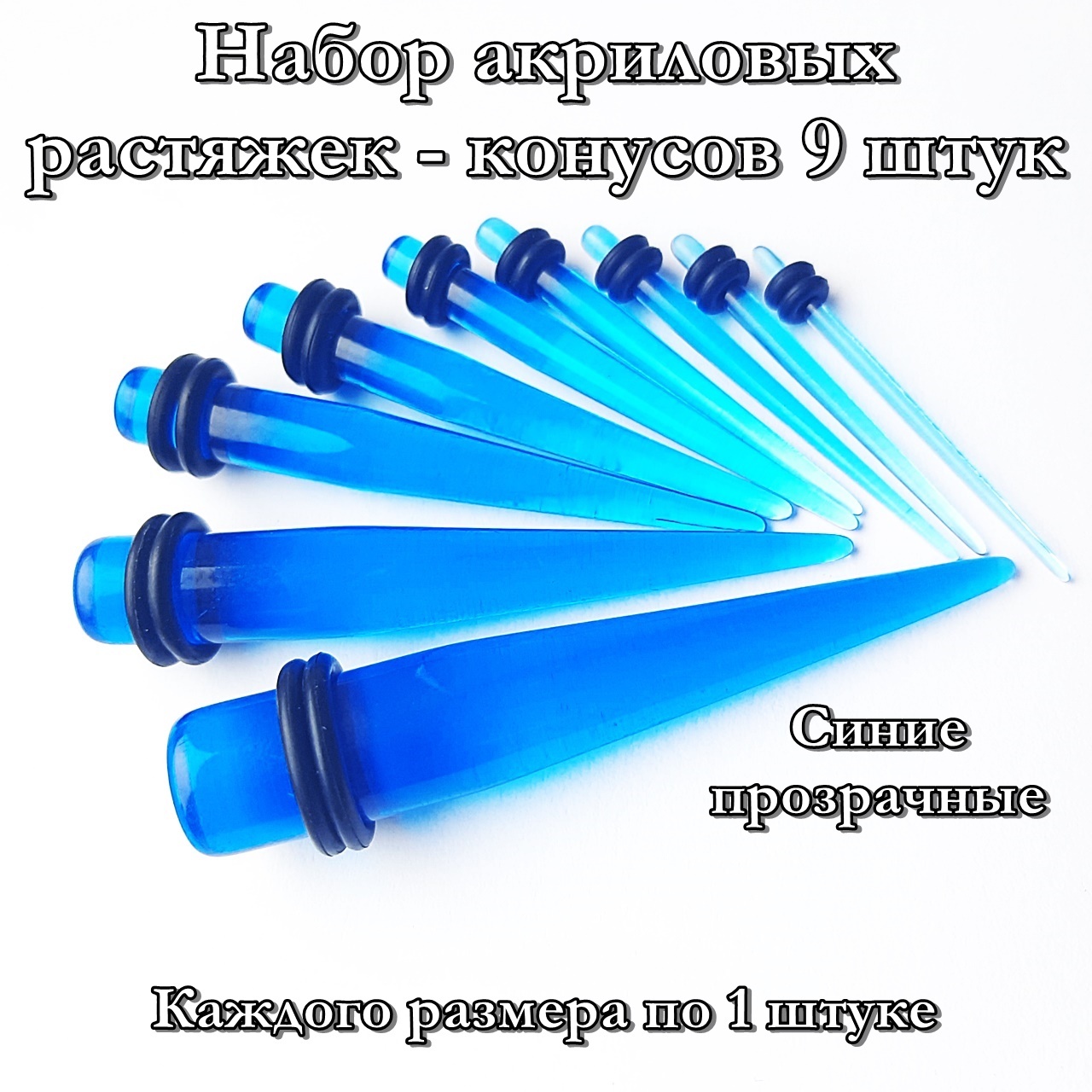 Материал акрил, в наборе 9 штук, по 1 штуке каждого размера. Размеры в наборе 1.6 мм, 2 мм, 2.4 мм, 3.2 мм, 4 мм, 5 мм, 6 мм, 8 мм, 10 мм. Цвет синий прозрачный