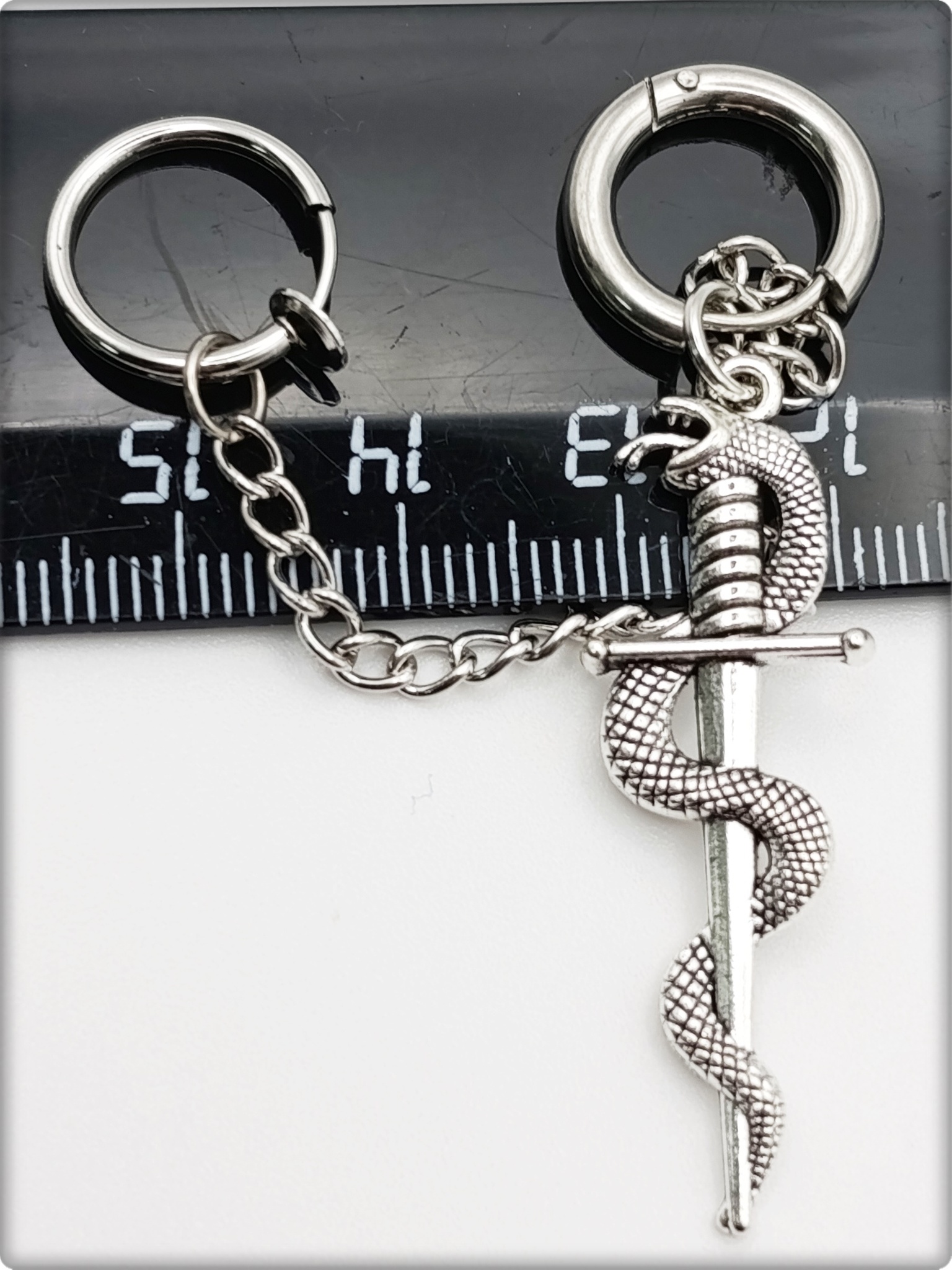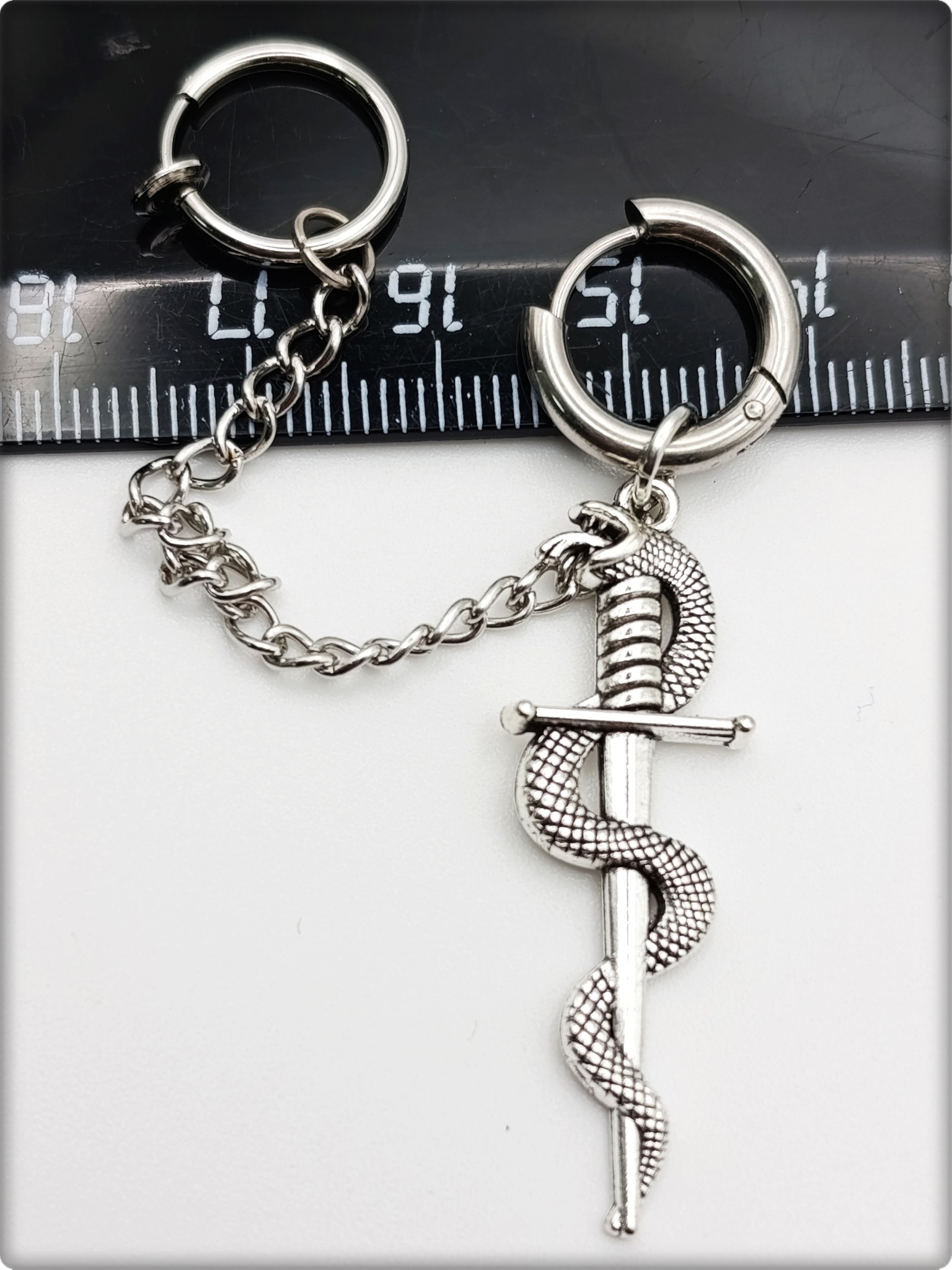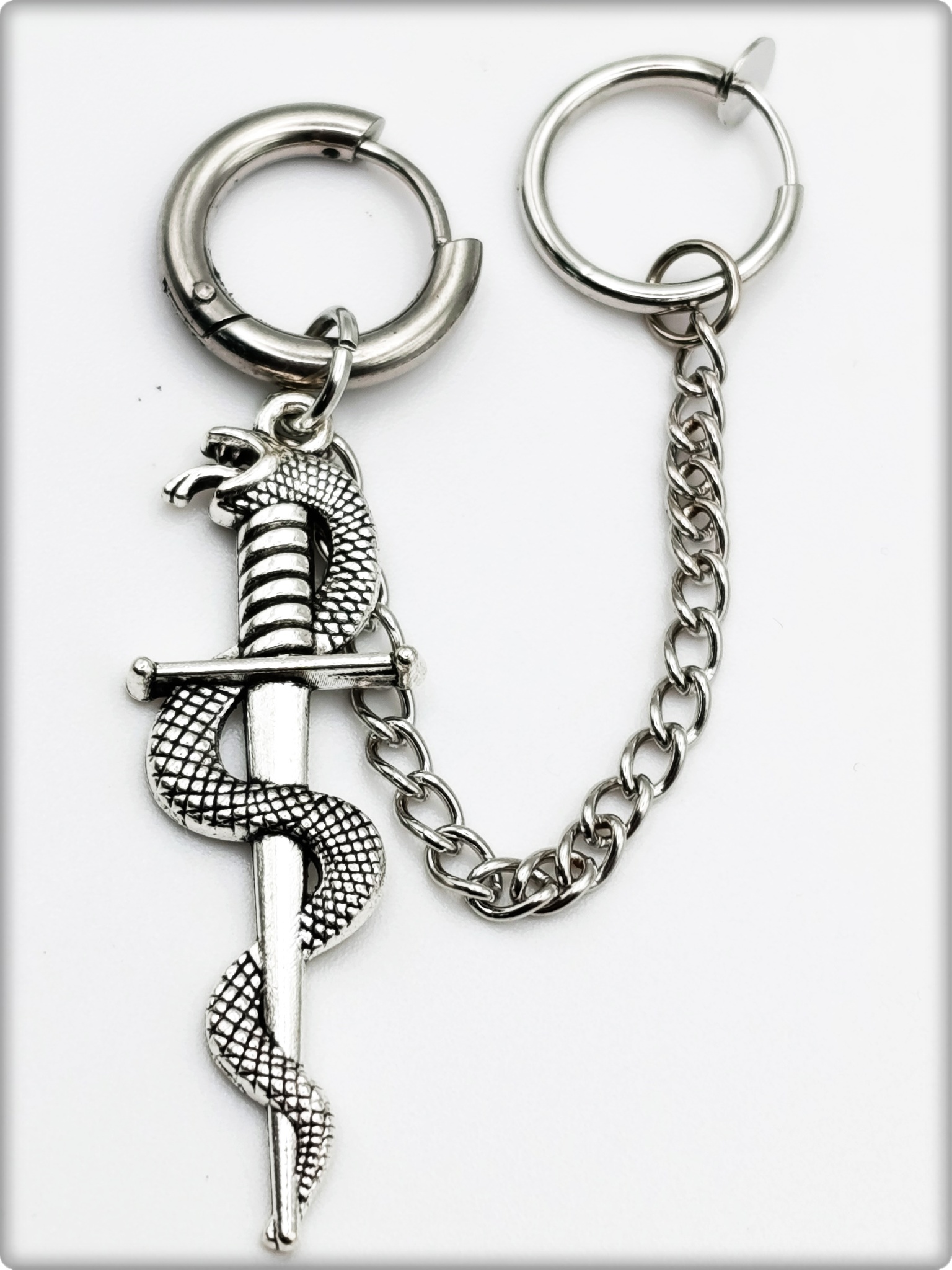 Набор серьга с клипсой "Змея с кинжалом" .