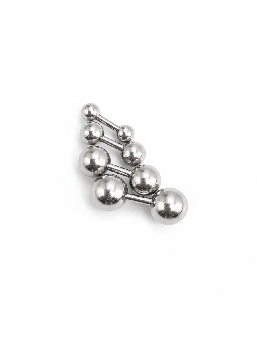Набор штанг (4 шт.) 4 мм с шариками 3,4, 5, 6 мм для пирсинга ушей.