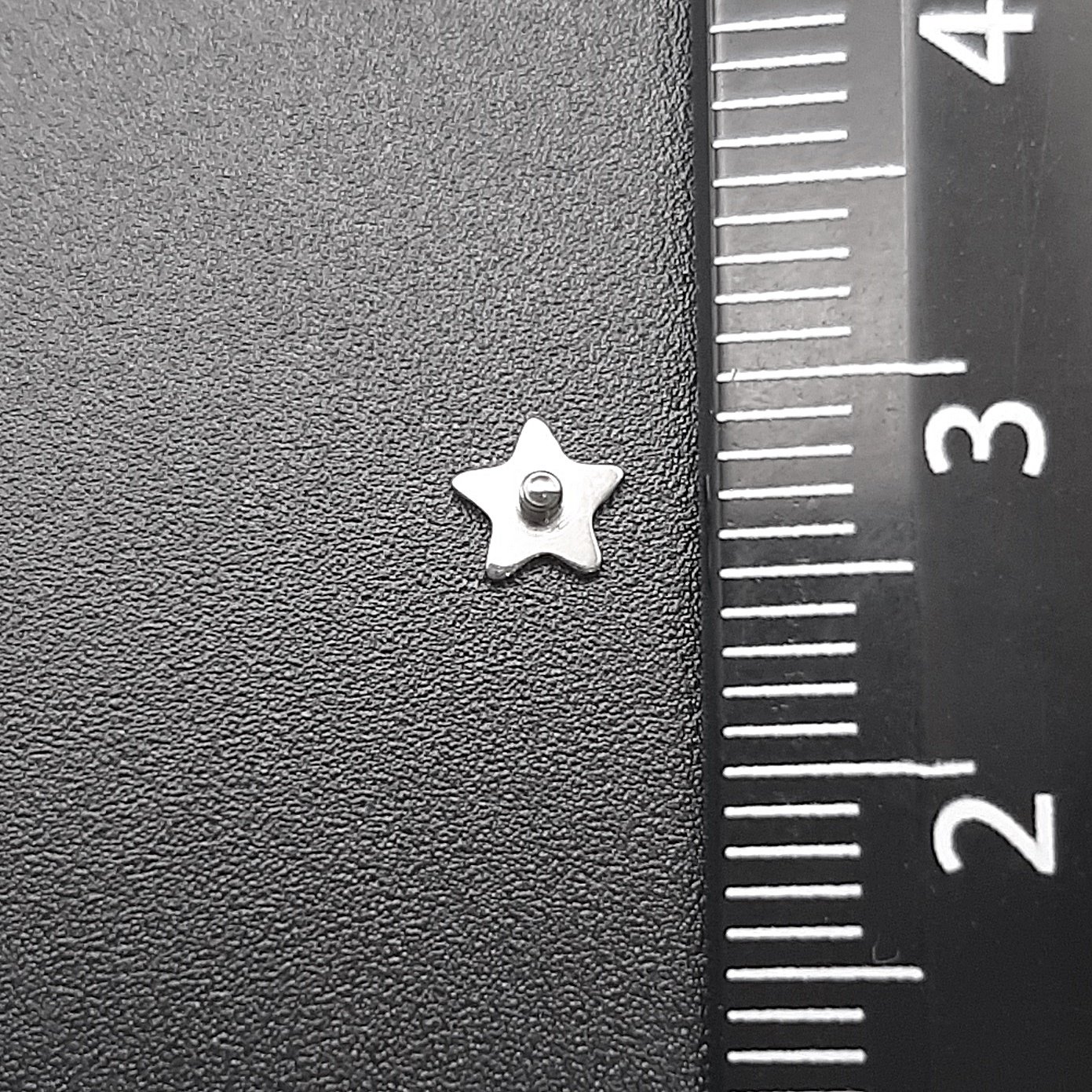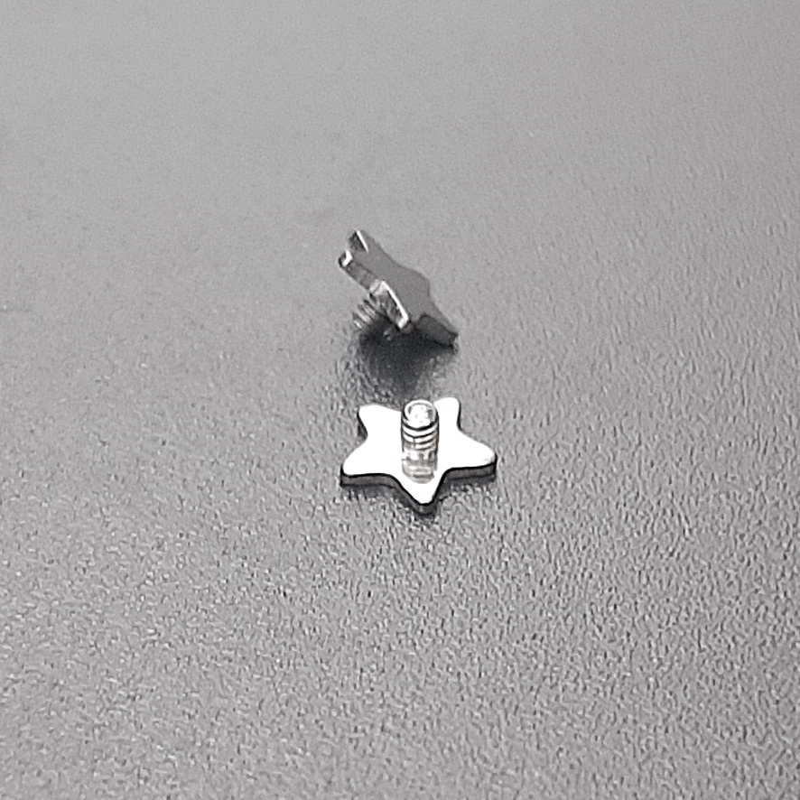 Микродермал в форме звездочки для пирсинга ( без якоря). В упаковке 1 штука. Материал - Титан G23. Толщина резьбы - 1,6 мм ( Стержень диаметром 1,2 мм, якорь нужно подбирать с толщиной 1,6 мм). Диаметр - 4 мм.
