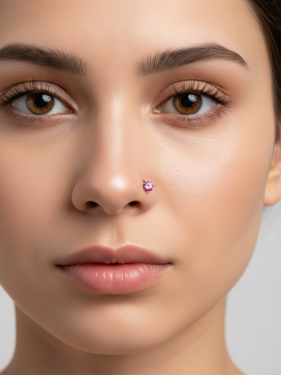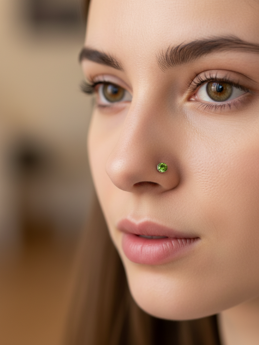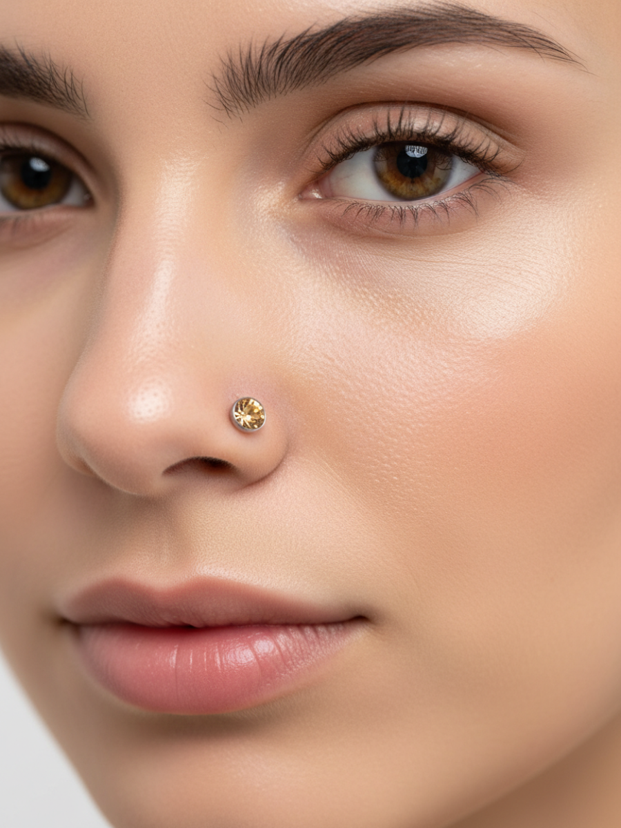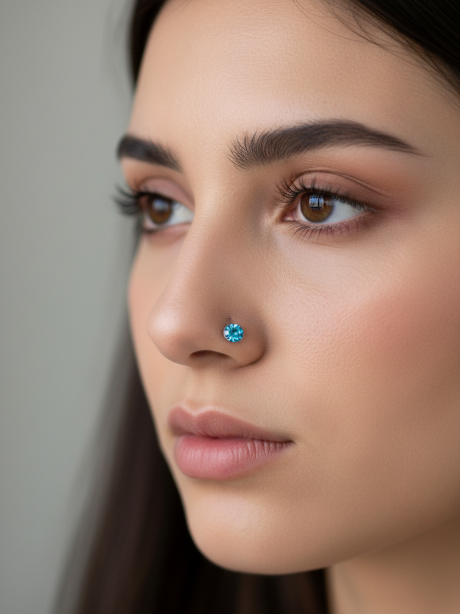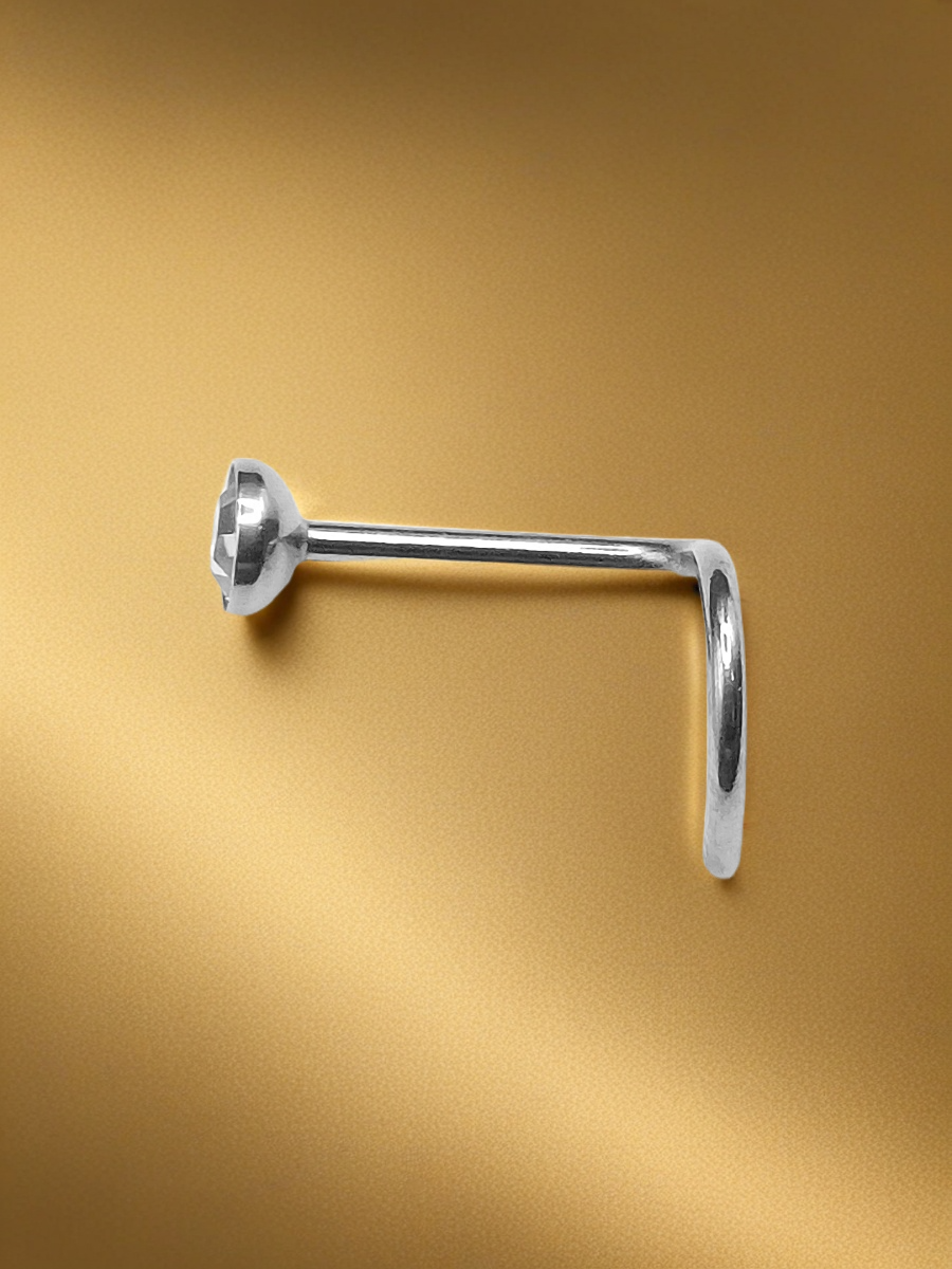 Изогнутая нострила с кристаллом для пирсинга крыла носа Стандартная нострилла для крыла носа, выполненный из хирургической стали, с камешком. Диаметр кристалла - 3 мм, Длина нострилы до изгиба - 7мм. Толщина - 0,8 мм Преимущество изогнутой нострилы в том, что она не выпадает из области пирсинга.