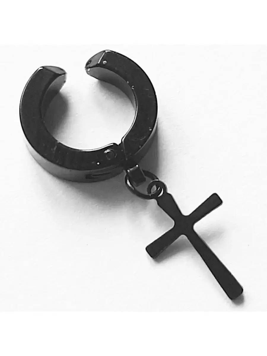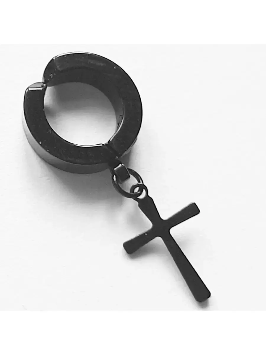 Обманки серьги-кольца (без прокола) с подвеской "Крест". цена за одну штуку! Назначение: для украшения пирсинга ушей. Материал: сталь 316L Диаметр (наружный ) кольца 13 мм, длина подвески 16 мм.