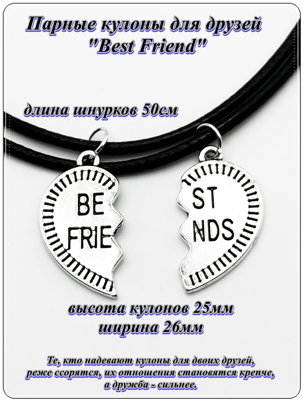 Те, кто надевают кулоны для двоих друзей, реже ссорятся, их отношения становятся крепче, а дружба - сильнее.