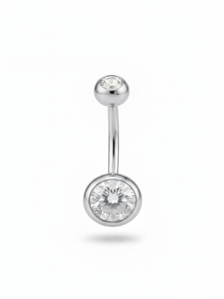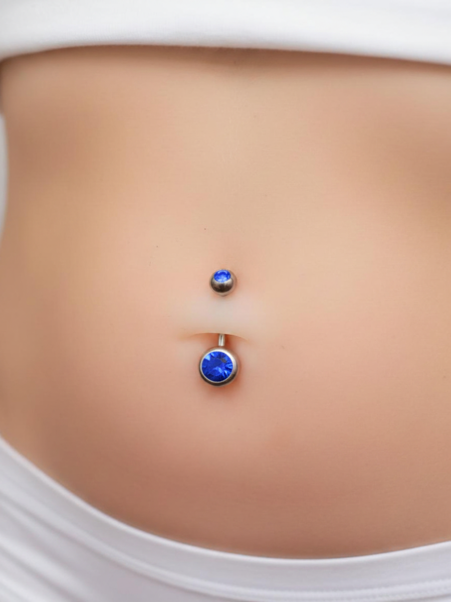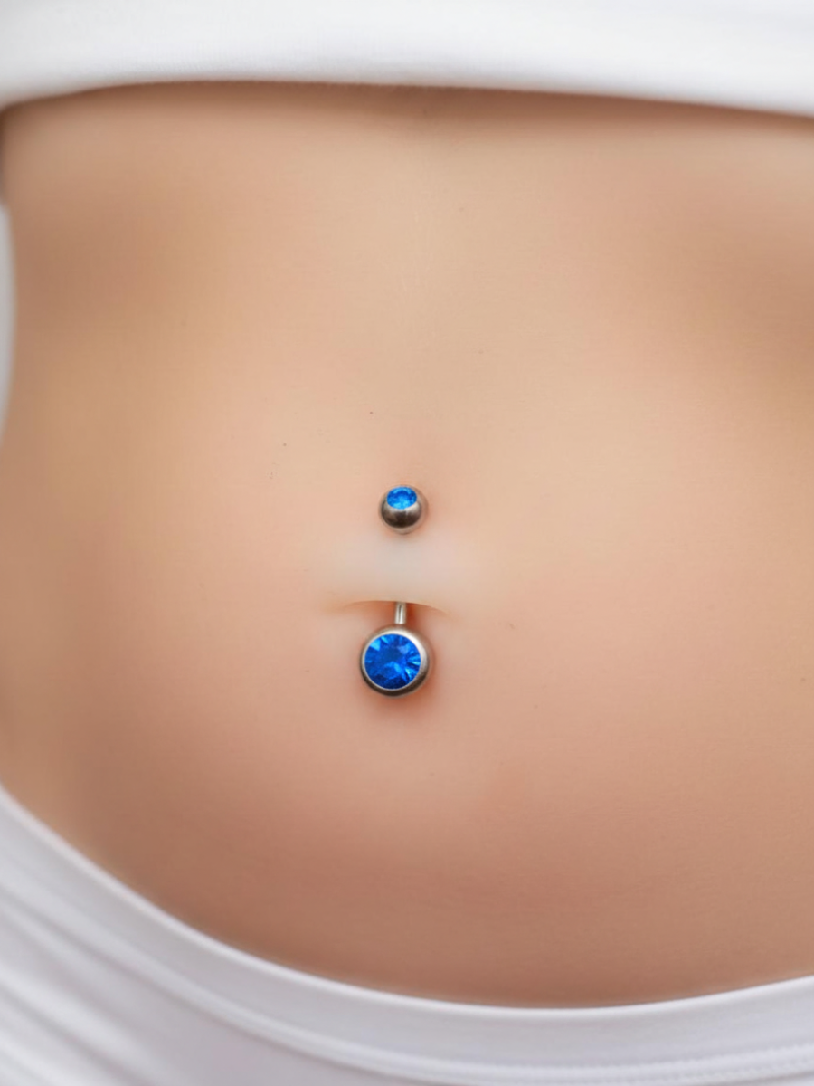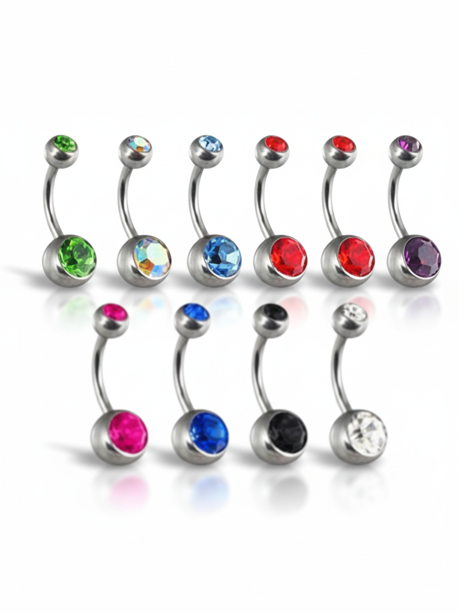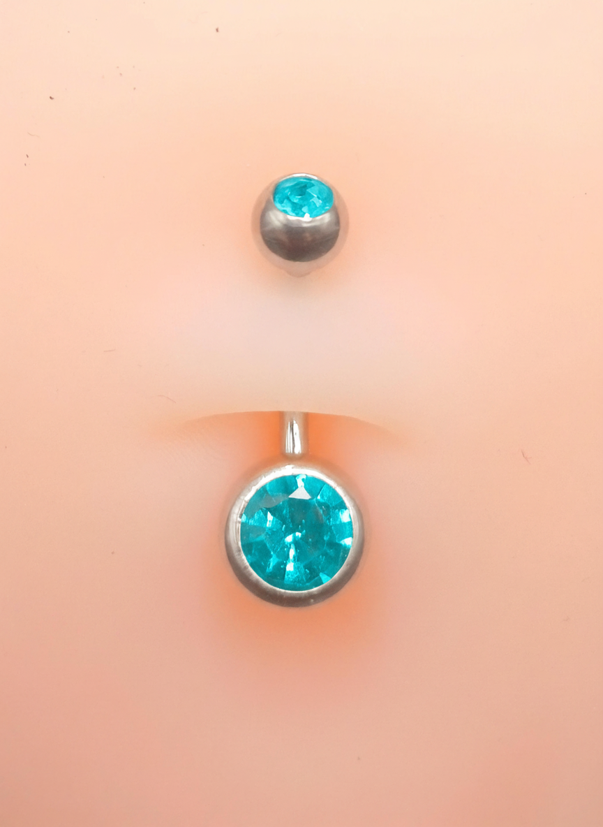 Для прокола пупка с двумя кристаллами из медицинской стали Назначение: для украшения пирсинга пупка (идеально подходит для первичного прокола). Материал: медицинская сталь. Длина банана 10 мм. Толщина 1,6 мм. Диаметр шариков 5 мм, 8 мм.