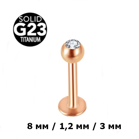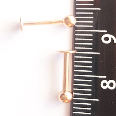 Длина штанги 8 мм, толщина 1.2 мм. Диаметр шарика 3 мм.