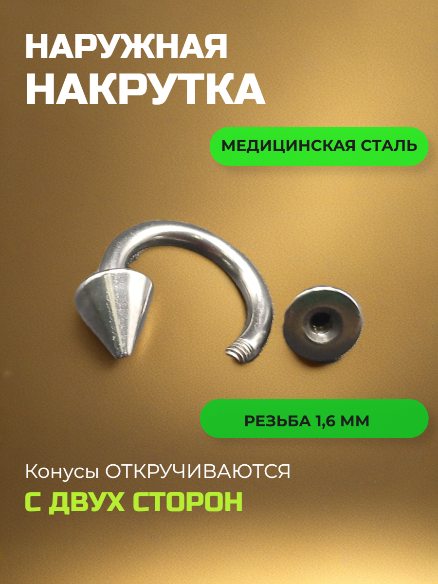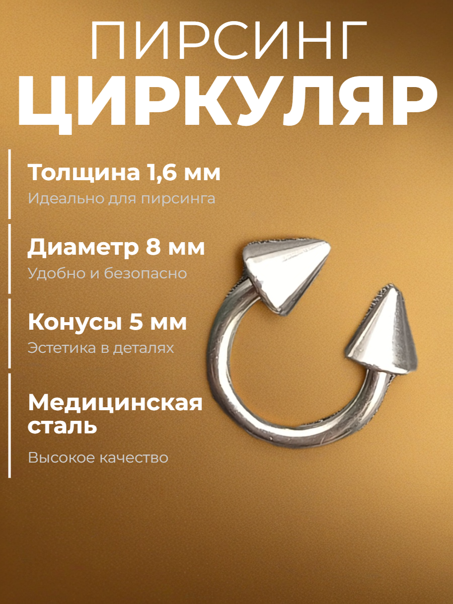 Подковы, полукольца для пирсинга: диаметр 8 мм, толщина 1,6 мм, диаметр конусов 5 мм. Медицинская сталь