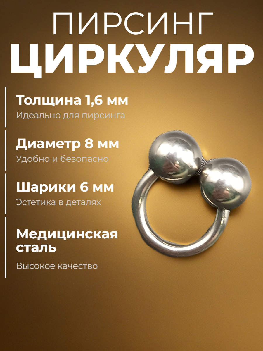 Подковы, полукольца для пирсинга: диаметр 8 мм, толщина 1,6 мм, диаметр шариков 6 мм. Медицинская сталь