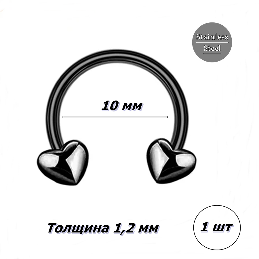 Микроциркуляр для пирсинга с накруткой сердечки. В упаковке 1 штука. Материал - медицинская сталь. Диаметр - 10 мм. Толщина 1,2 мм. Сердечки - 4 мм.