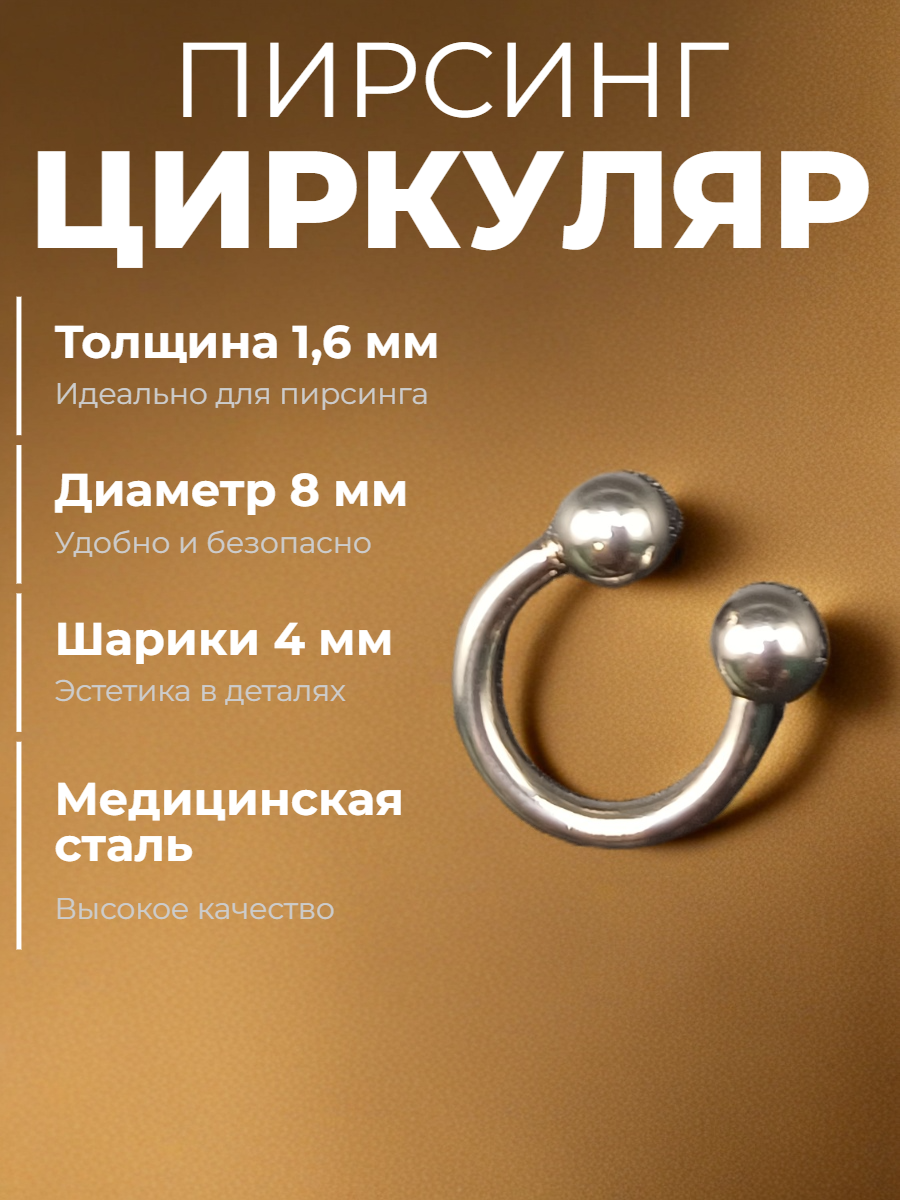 Подковы, полукольца для пирсинга: диаметр 8 мм, толщина 1,6 мм, диаметр шариков 4 мм. Медицинская сталь