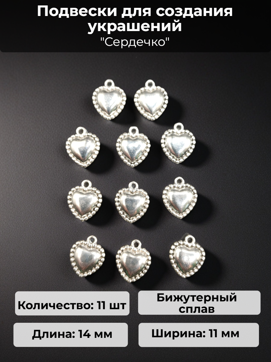 Высота подвески 14 мм, ширина 11 мм. Соединительные колечки 5мм в комплекте.