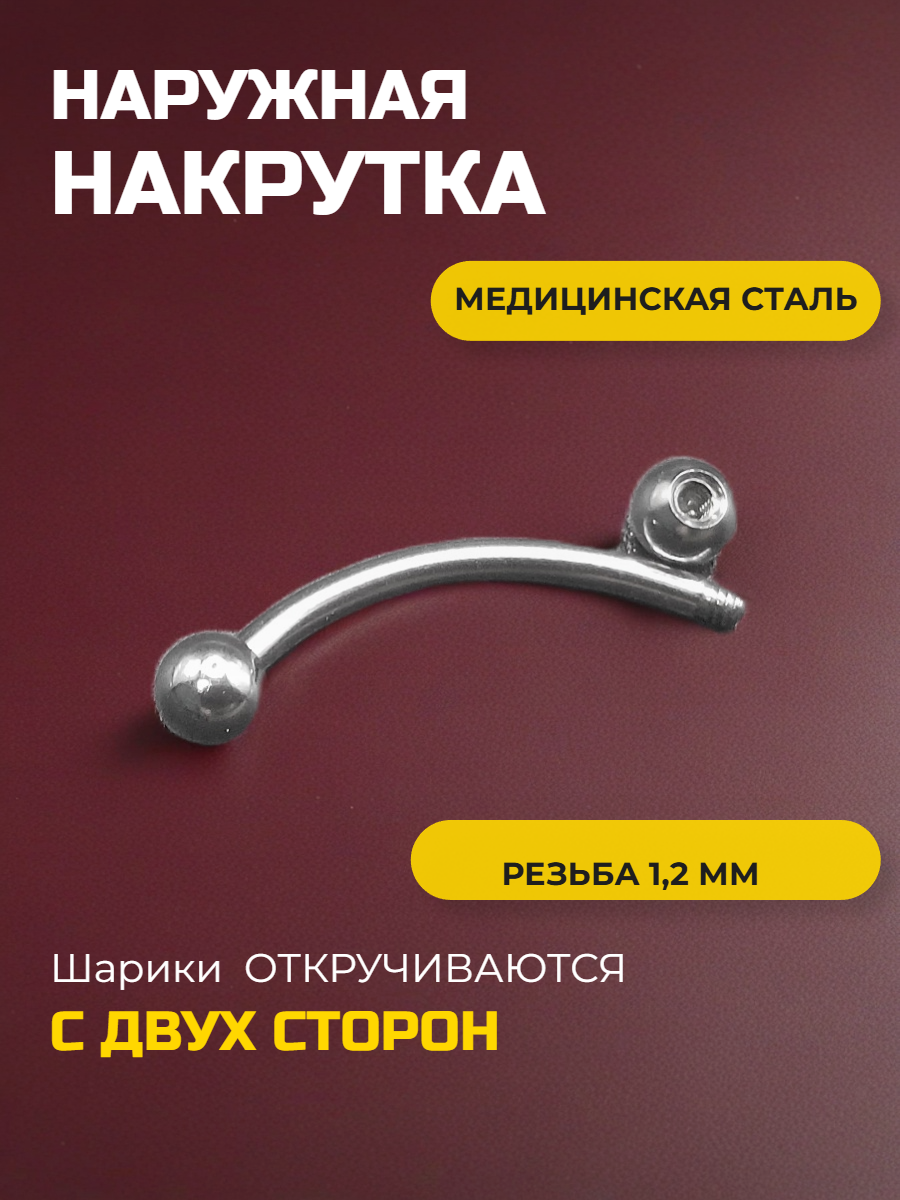 Серьга для прокола брови с шариками. Микробанан из хирургической стали с двумя шариками. Длина банана 12 мм. Толщина 1,2 мм. Диаметр шариков 3 мм. Отлично подходит для украшения пирсинга брови.