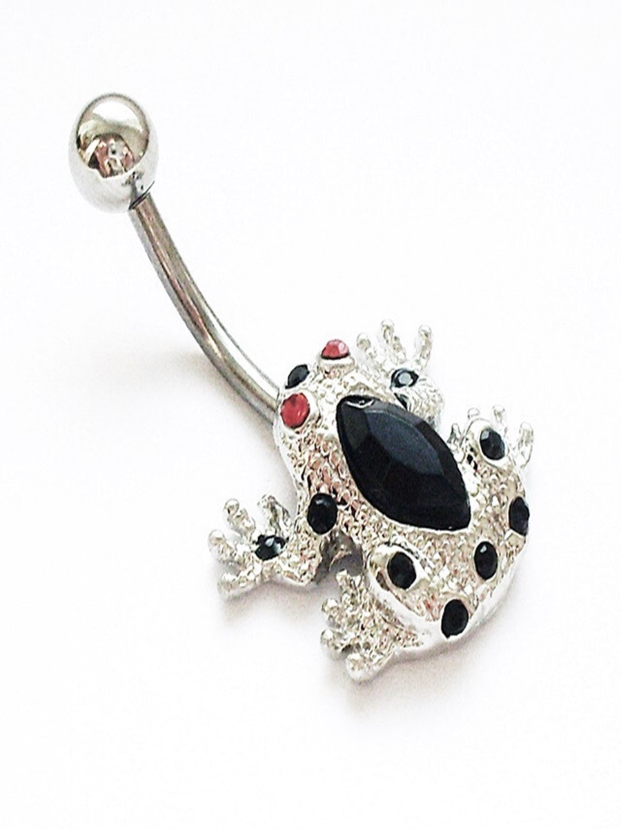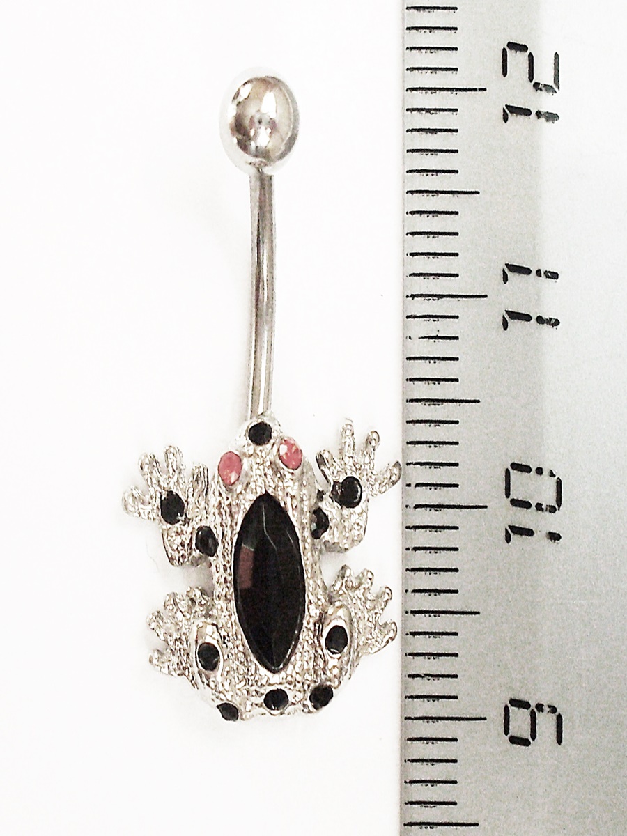 Серьга для пирсинга пупка. Банан из медицинской стали "Лягушка" с черными кристаллами Материал - медицинская ( хирургическая сталь) Длина изгиба - 12 мм Толщина штанги - 1,6 мм Длина украшения - 15 мм Диаметр шарика - 5 мм Пирсинг – это модификация тела путем прокола какой-либо его части, в который вставляются украшения. Пирсинг пупка обычно выполняют, чтобы подчеркнуть красоту плоского животика. Лучше все для первого прокола подходят серьги из медицинской ( хирургической ) стали. Они не окисляются и не взаимодействуют со светом, потом и другими веществами. После полного заживления можно выбирать серьги из любого понравившегося вам материала, безопасного и не вызывающего реакции на теле - акрил, серебро, золото, титан, а так же с покрытием этими материалами.