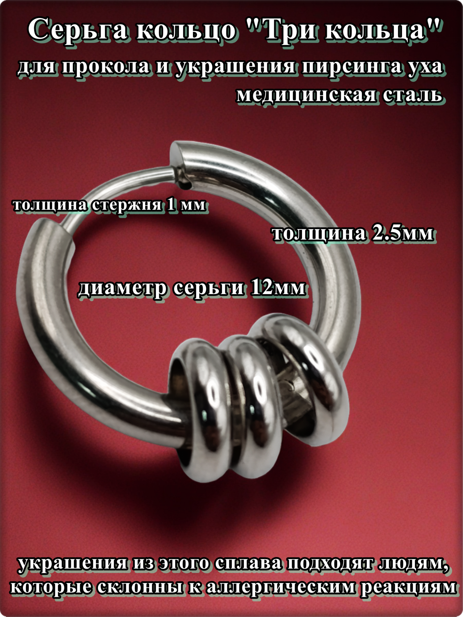 Диаметр серьги 12мм, толщина 2.5мм, толщина стержня 1мм.