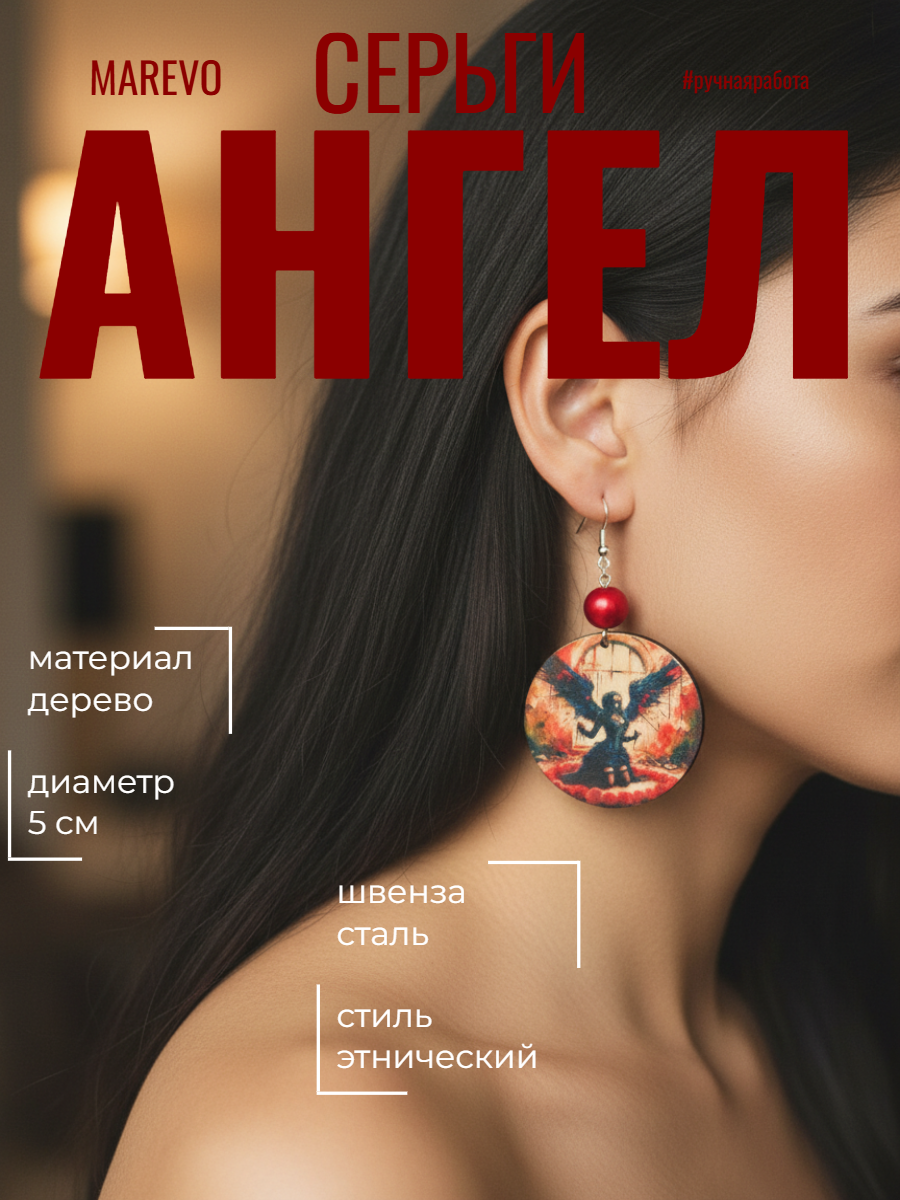Эти великолепные серьги "Ангел" из натурального дерева станут изысканным дополнением вашего образа! Стильный диаметр 5 см добавляет шарма и привлекает взгляды. Приятное дополнение к вашему имиджу – натуральность и экологичность материалов.